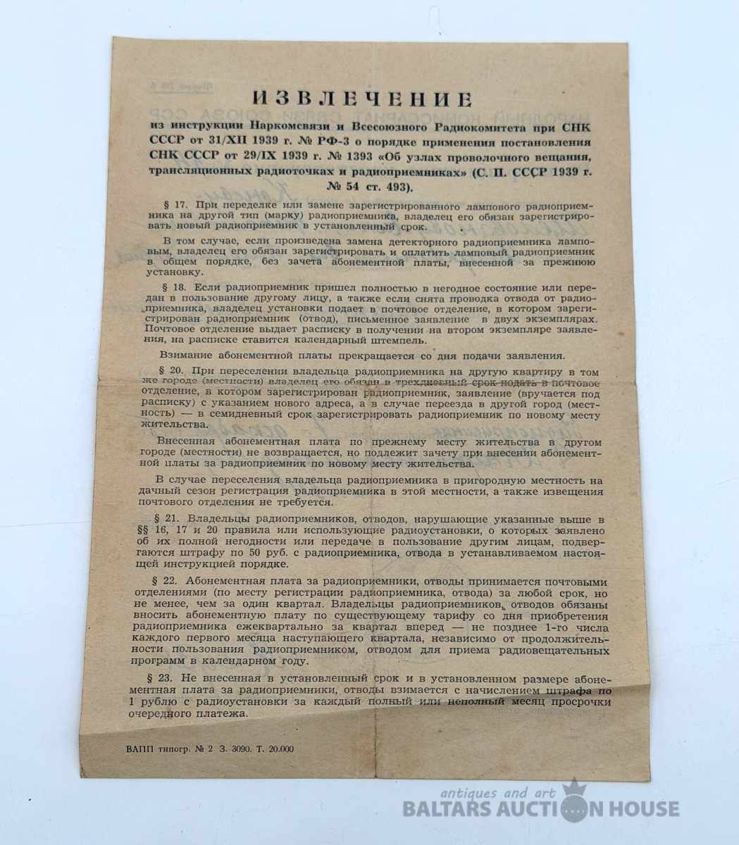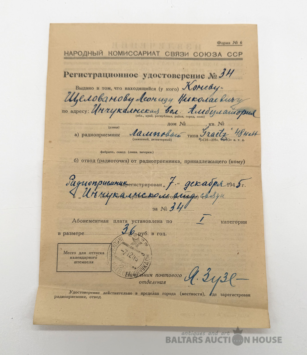 Radio reģistrācijas dokuments. Latvija 1945.