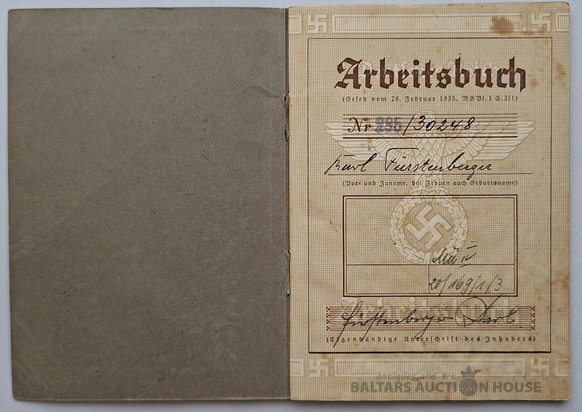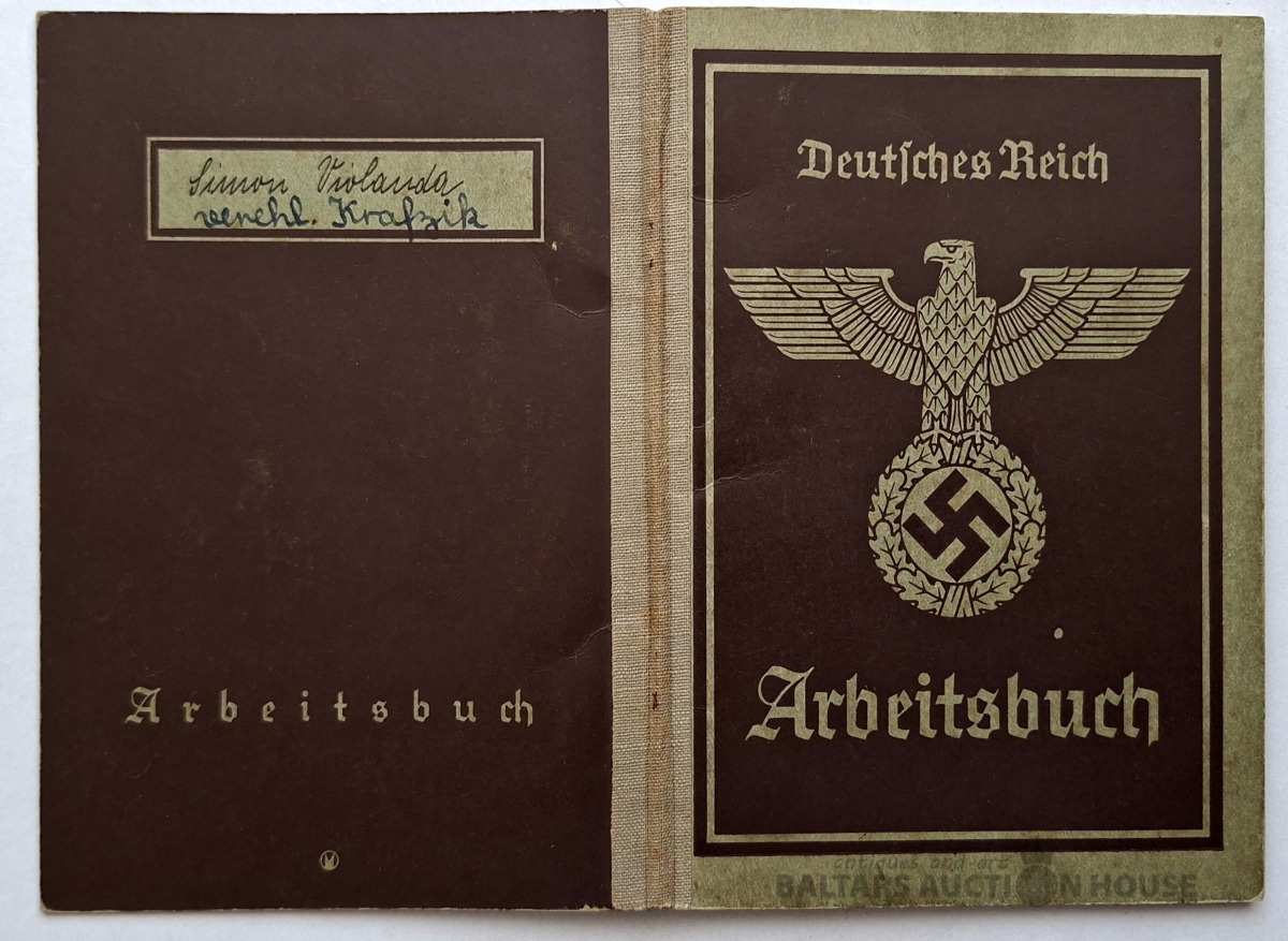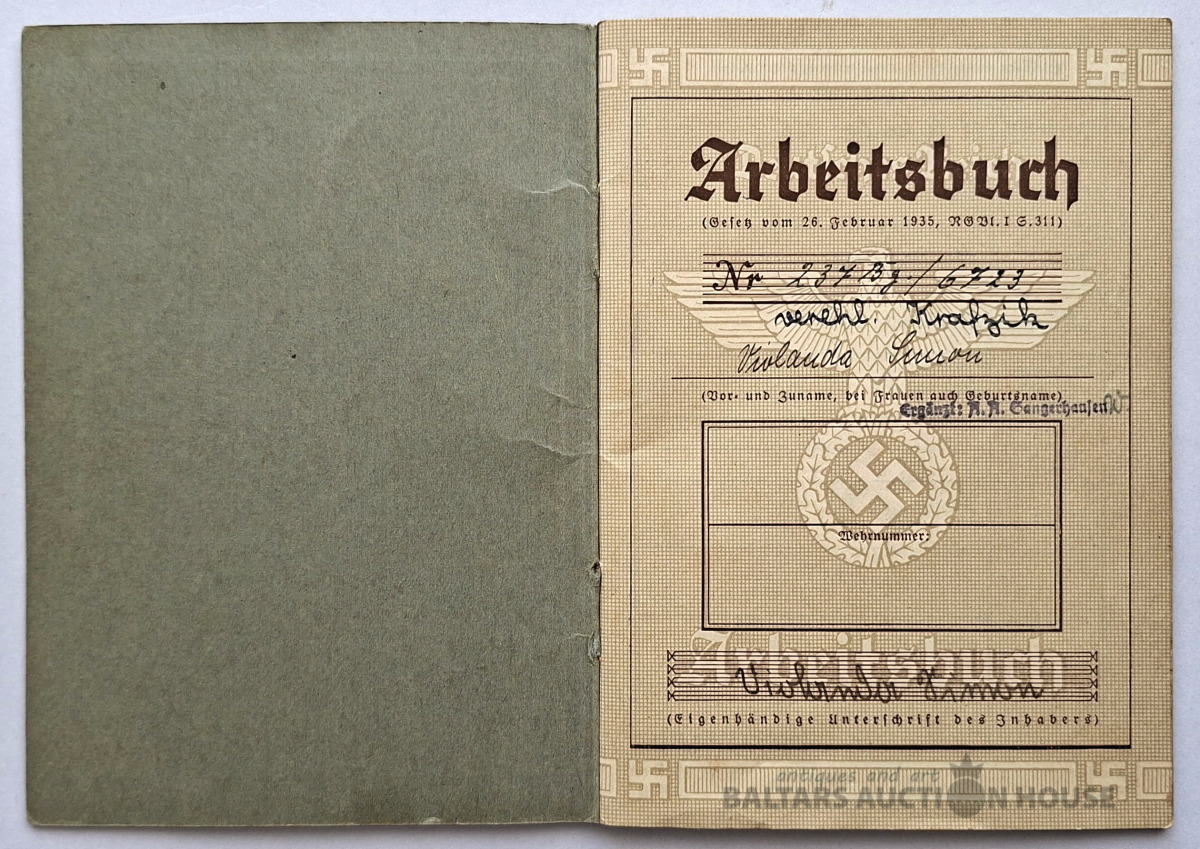 "Deutsches Reich" (Vācijas Reihs) un "Arbeitsbuch" (Darba grāmata).