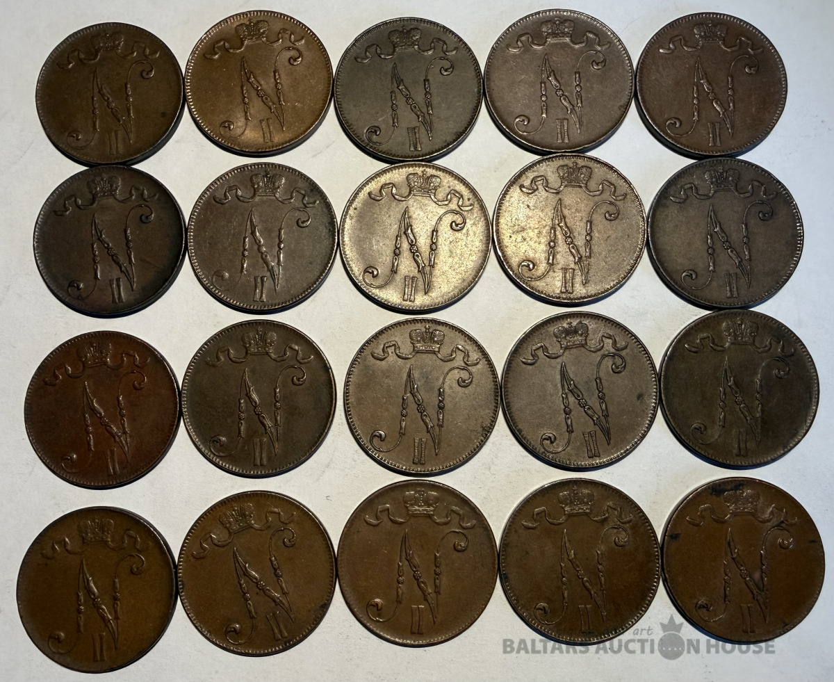 Somija/Cara Krievija - 5 Pennia, 1917 gads - 20 monētas, Varš. Militārais izlaidums