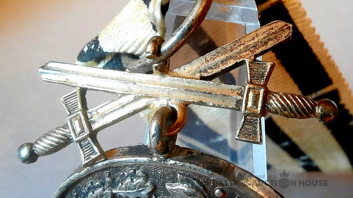 II šķiras Kara Nopelnu Krusts ar zobeniem (Kriegsverdienstkreuz mit Schwertern 2. Klasse), 1939. gada modelis. Pārklājums krusta centrā (svastika) ir nolobījies; skatīt fotoattēlu!
