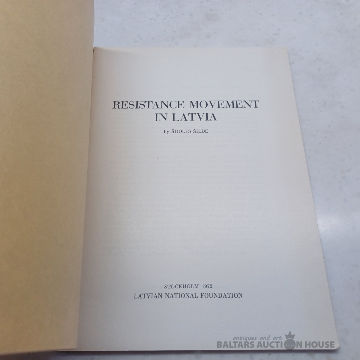 Ādolfs Šilde – Resistance Movement in Latvia (Pretošanās kustība Latvijā), 1972. g. Latviešu nacionālais fonds Stokholmā. Virākas kartes bildes (skatīt attēlos). Kolekcijas stāvoklī