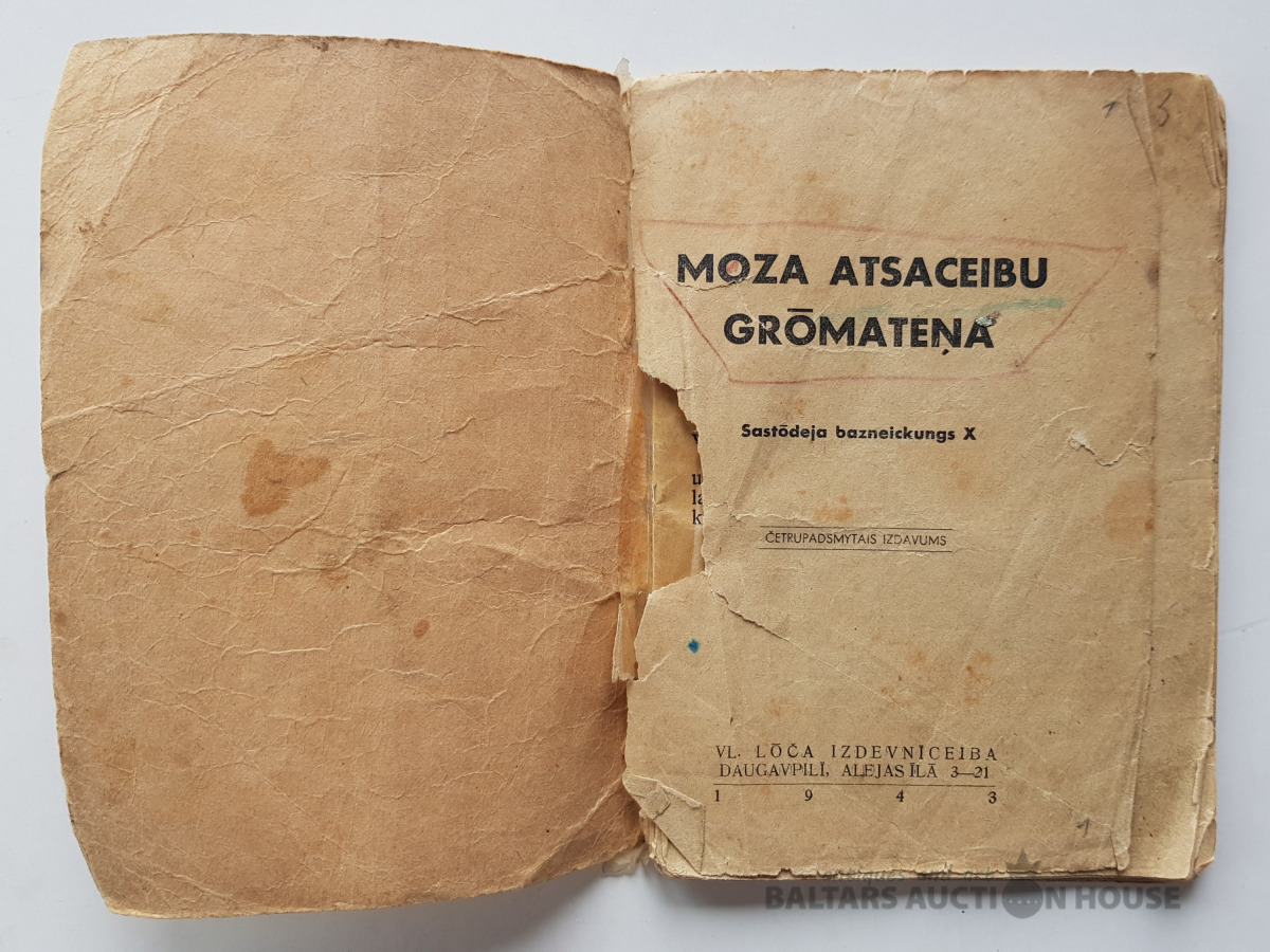 "Moza atsaceibu grōmateņa", sastādeja bazneickungs X, V. Lūča izdevnīceiba Daugavpīlī, 1943.