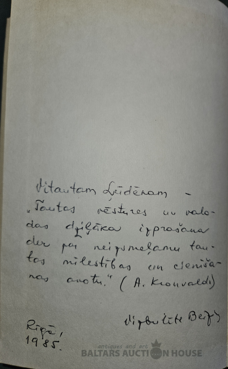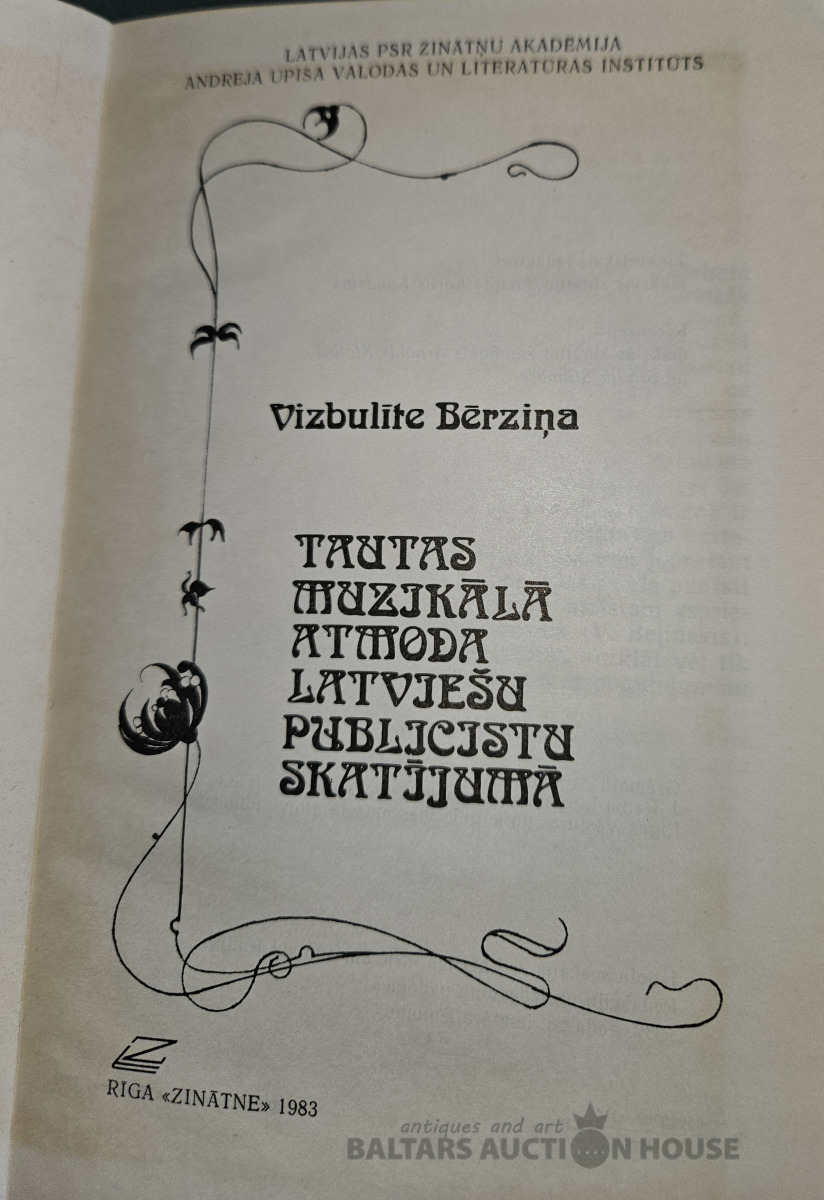 V.Bērziņa " Tautas muzikālā atmoda latviešu publcistu skatijumā." Ar autores veltijuma ierakstu dzejniekam Vitautam Ļūdēnam.