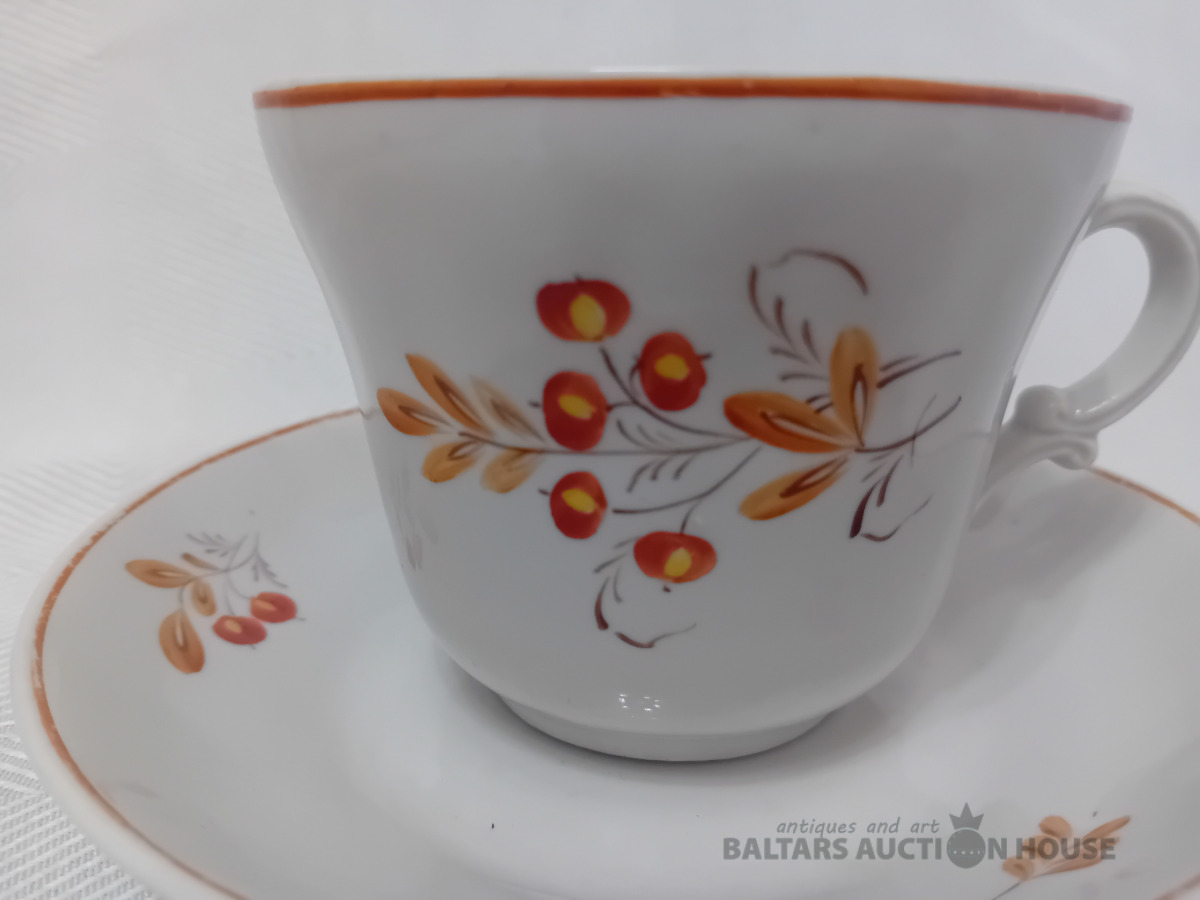 PFF , Kuzņecova formas kafijas, tējas pāris, porcelāns, ar roku apgleznots, Lietošanas pazīmes, bez plaisām, robiem