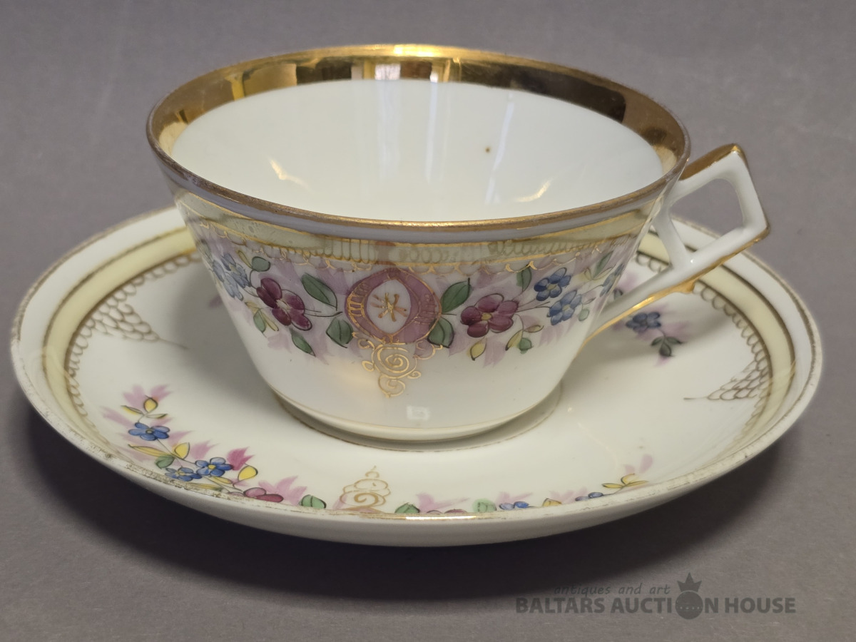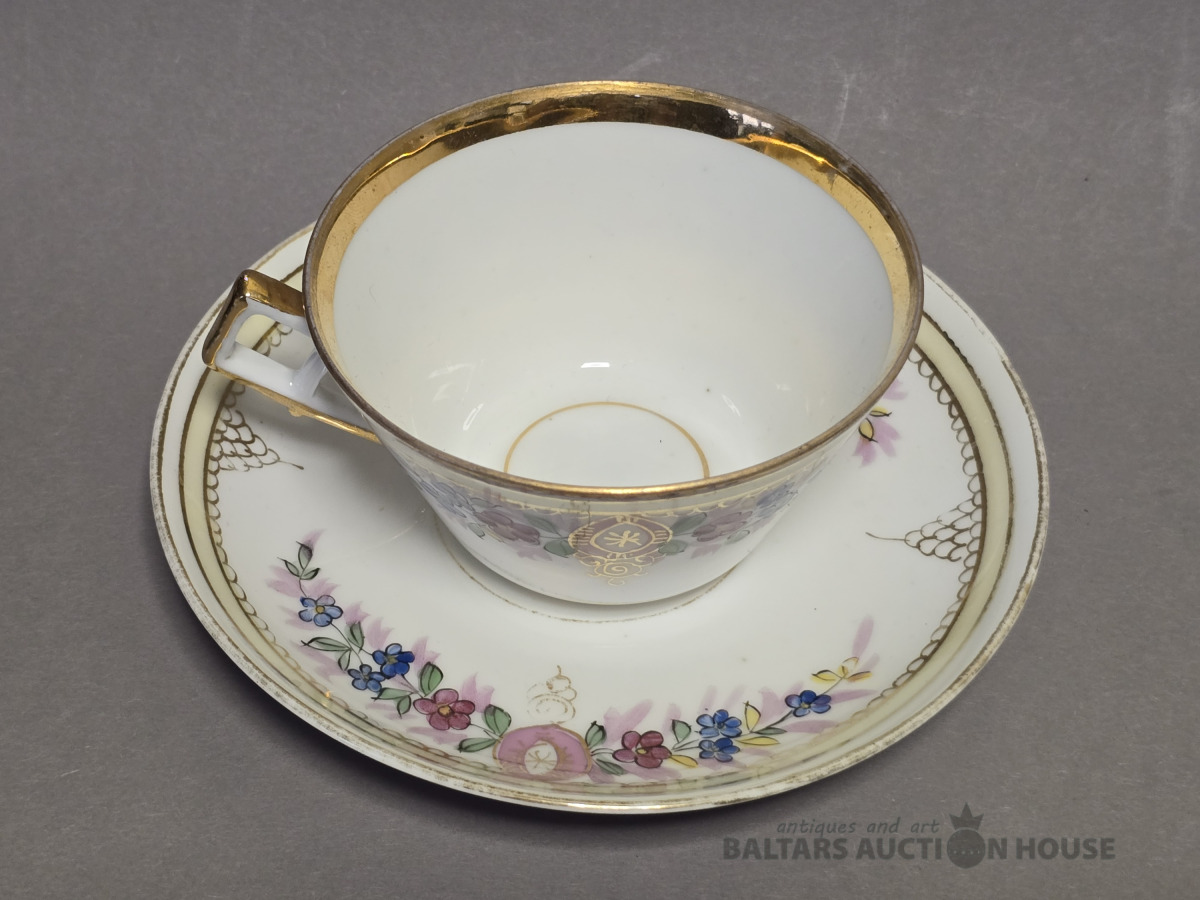 Porcelāna tējas pāris, roku gleznojums,zeltījums. M.S. Kuzņecova rūpnīca, Rīga (Latvija), 1872-1887 g.