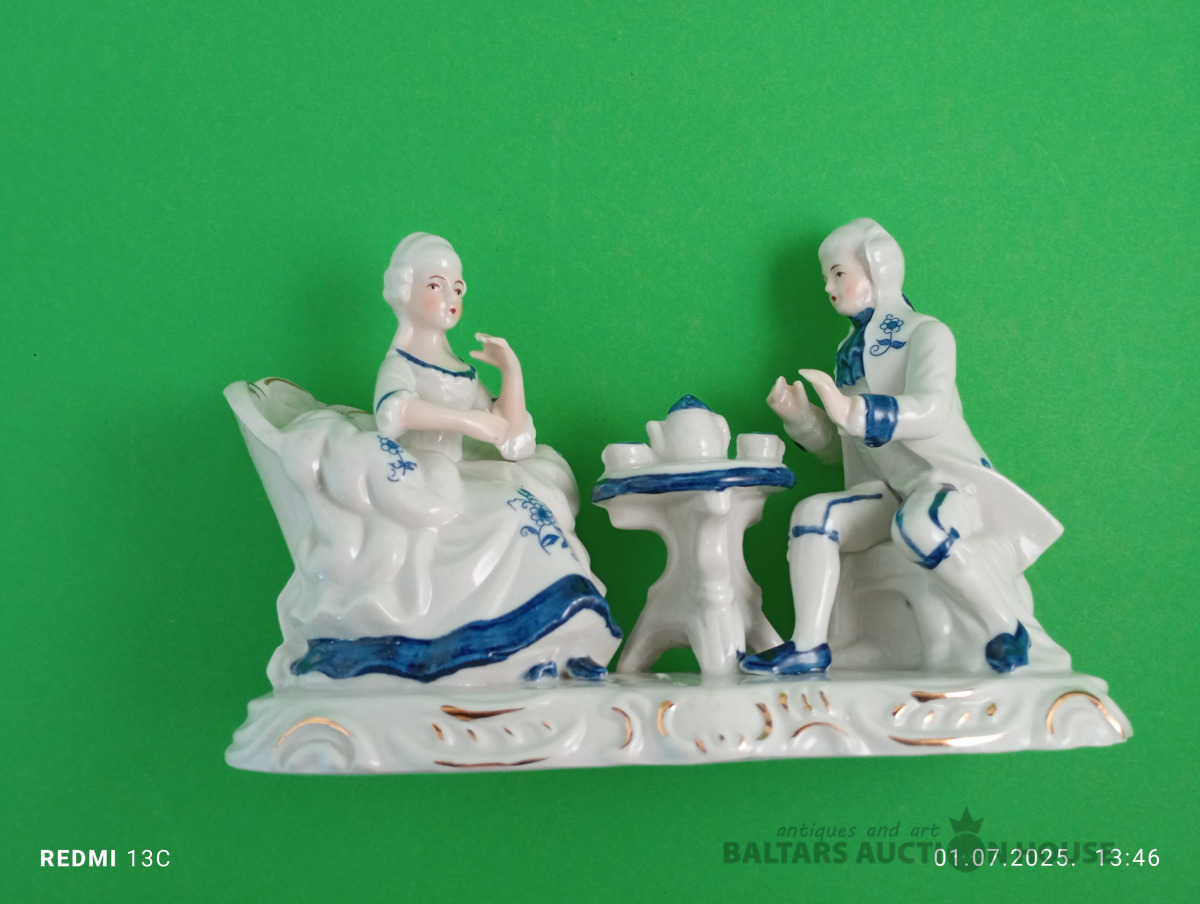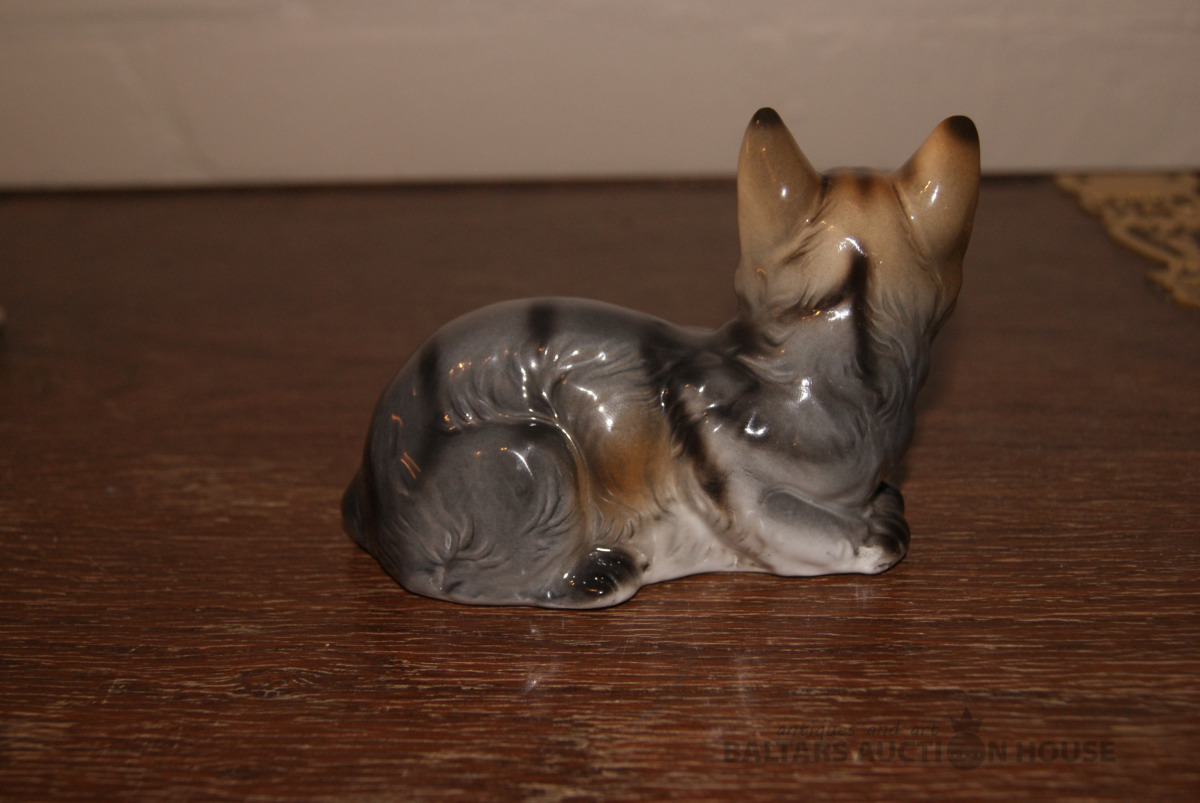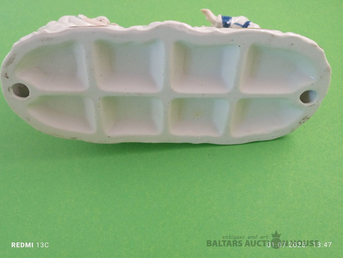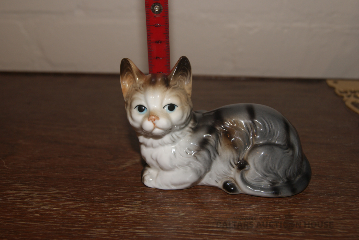 elegants, antīks porcelāna figūriņa – guļošu kaķi