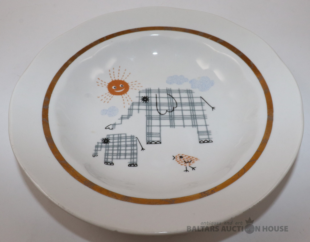 Dziļais šķīvis ar zilonīšu motīvu. Porcelāns, RPR. d=19,5 cm