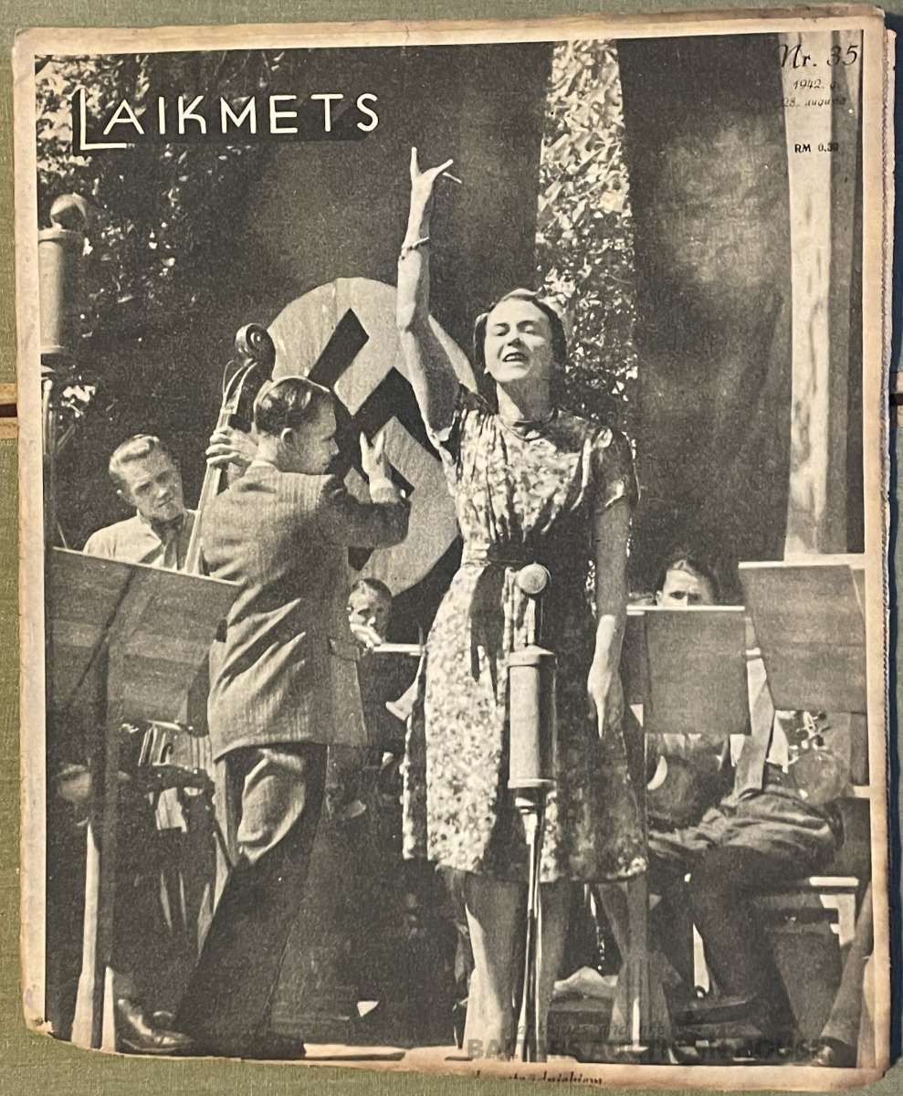 Žurnāls "LAIKMETS' 1942.g. Nr. 35. Visi Laikmeta numuri, kuri šeit tiek piedāvāti, vaitāk vai mazāk ir ar lietošanas pēdām. Informācija ir saglabājusies un žurnāli atspoguļo gan mākslas, gan sporta notikumus. Tajos ir kauju skatu foto un fīrers, Bangerskis u.c.