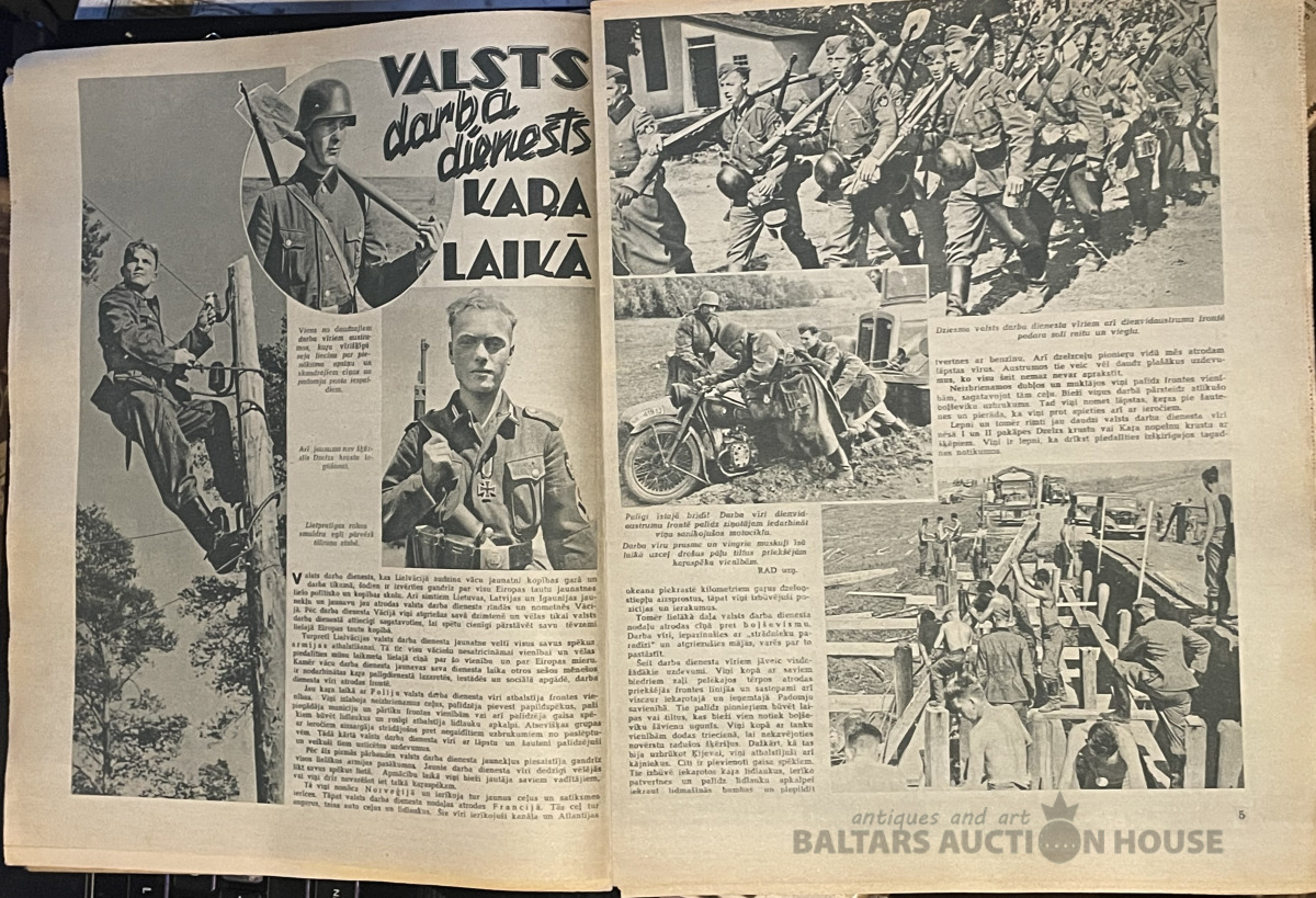 Žurnāls "LAIKMETS' 1943.g. Nr. 5. Visi Laikmeta numuri, kuri šeit tiek piedāvāti, vaitāk vai mazāk ir ar lietošanas pēdām. Informācija ir saglabājusies un žurnāli atspoguļo gan mākslas, gan sporta notikumus. Tajos ir kauju skatu foto un fīrers, Bangerskis u.c.