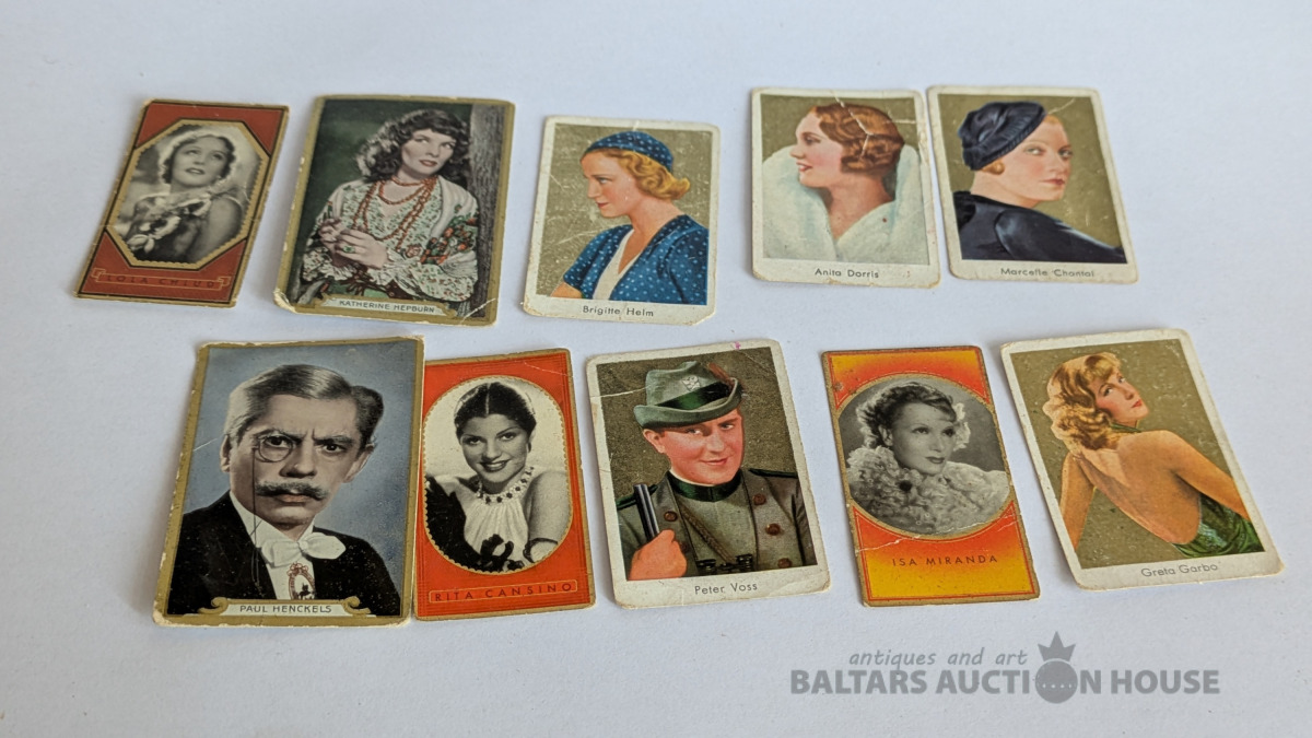 Kolekcijai. Kartītes ar 30-to gadu aktieru portretiem no tā laika cigarešu paciņām