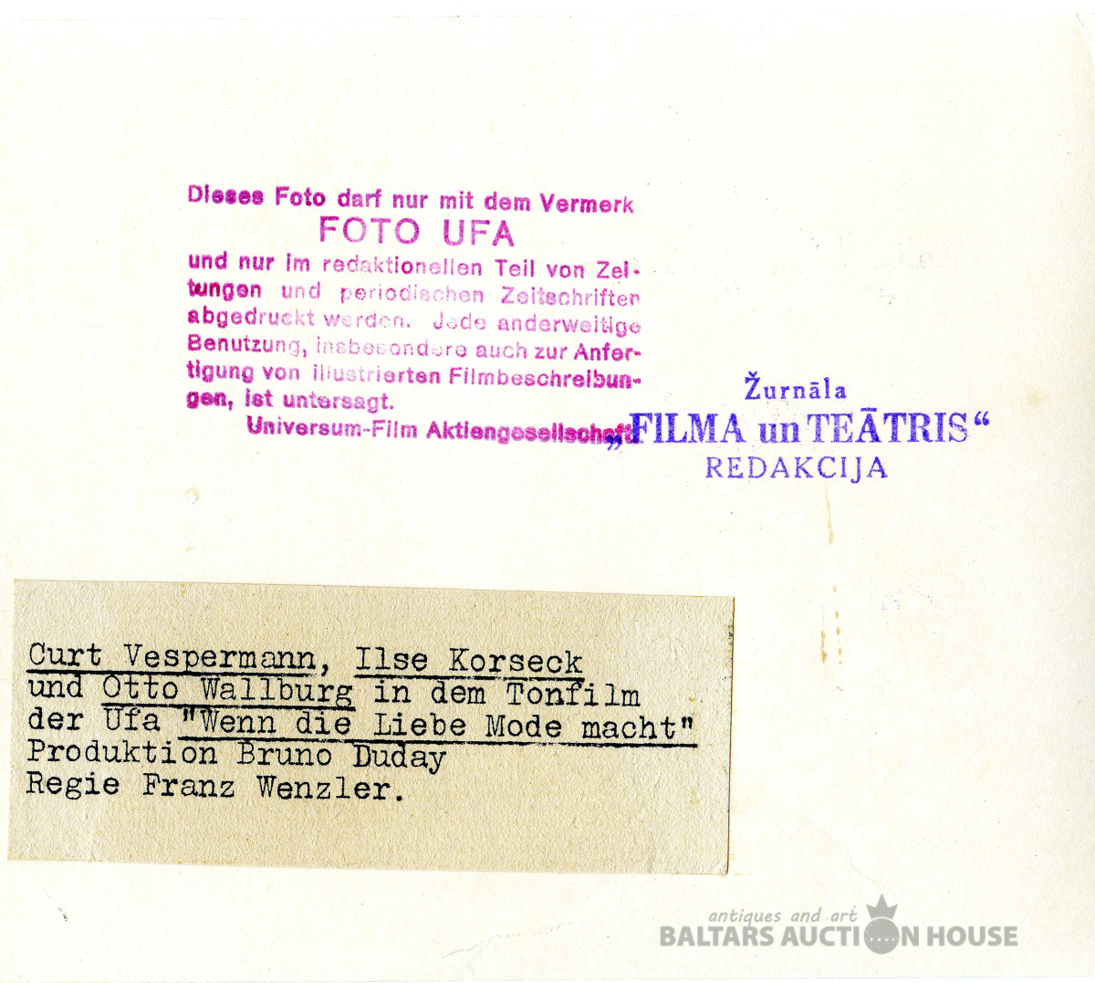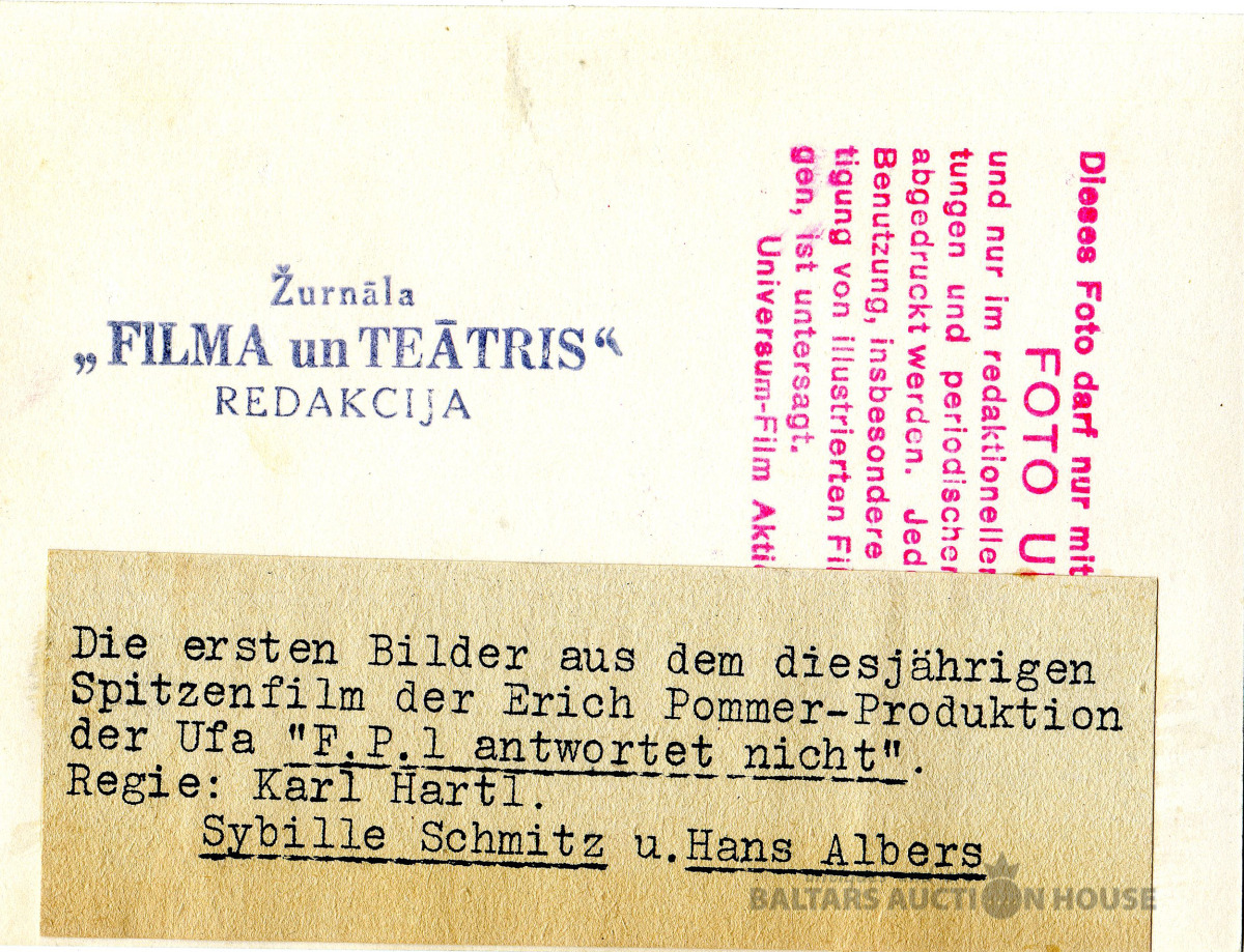 Retu teātra un kino priekšmetu cienītājiem. Foto iepakojums žurnālam "FILMA UN TEATRIS", 1932., Diemžēl aploksne ir slikti saglabājusies.