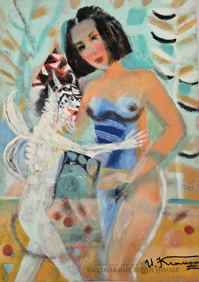 Uldis Krauze (1958). KAILA SIEVIETE. Kartons, jaukta tehnika. 35,5x25 cm