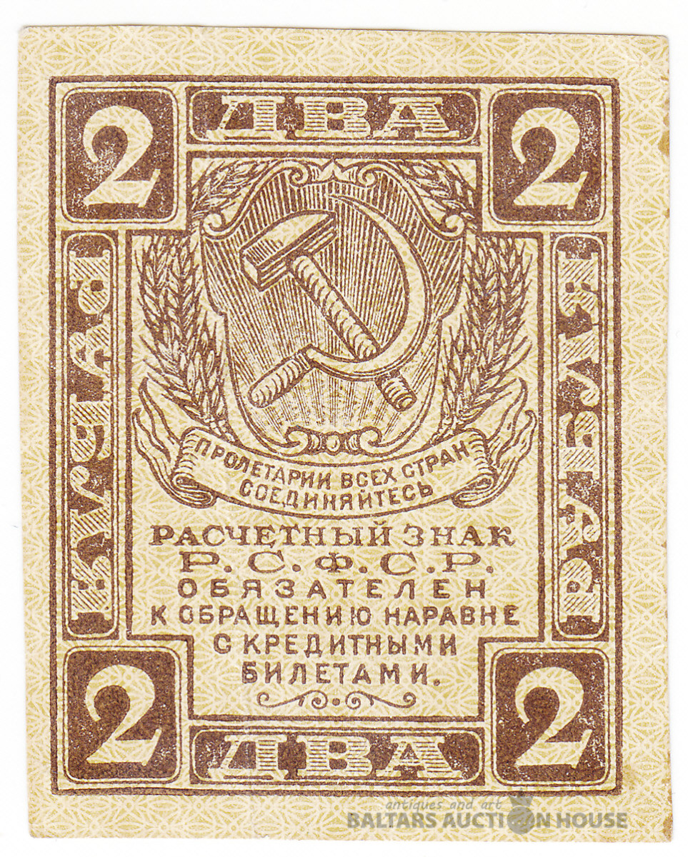 Krievija/Russia, 2 Rubļi 1919 aUNC/UNC