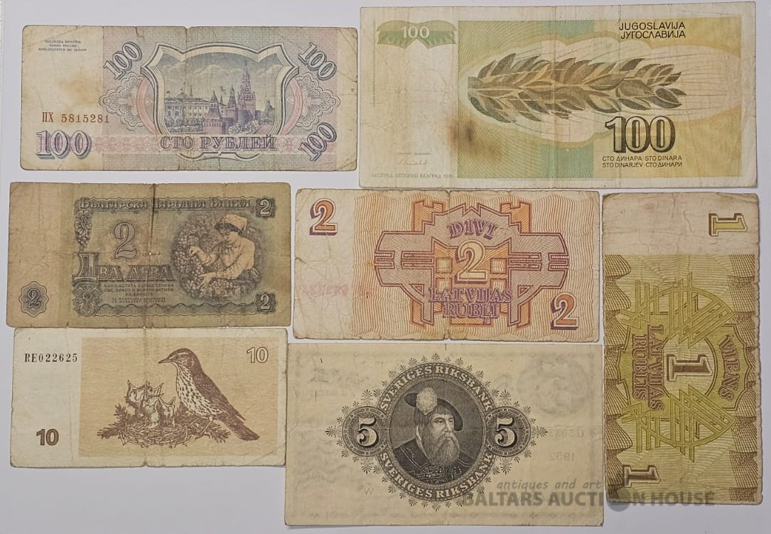 Banknotes Latvija, Zviedrija, Lietuva un citas, 7 gab.