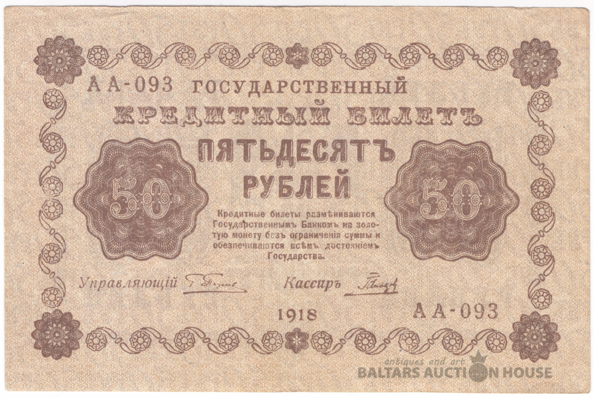 Banknote, Krievijas Impērija/Pagaidu valdība, 50 rubļi 1918, aUNC