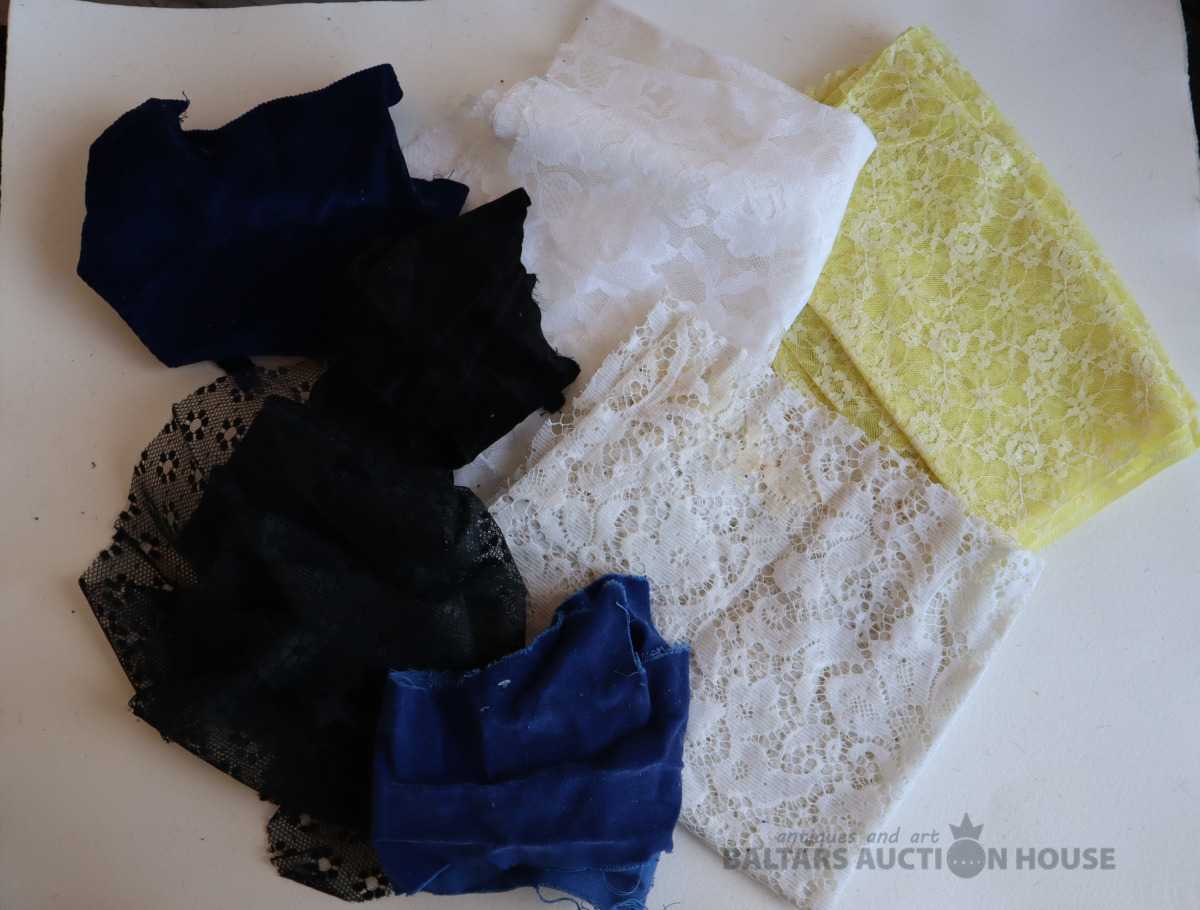 70., 80. gadu dažādi mežģīnu, tilla, samta un velveta audumu gabaliņi