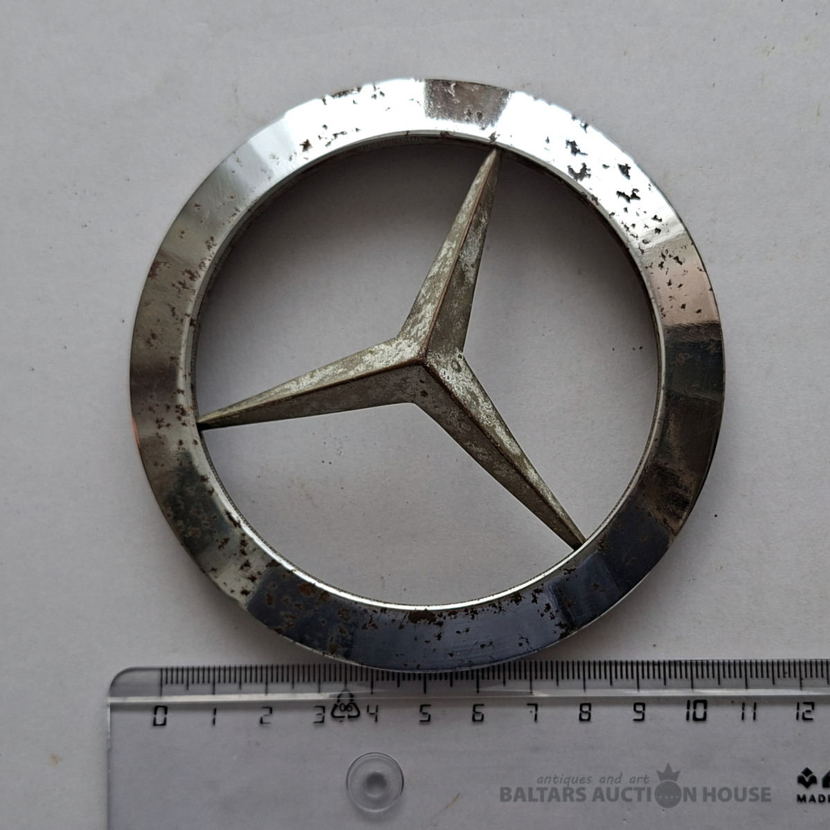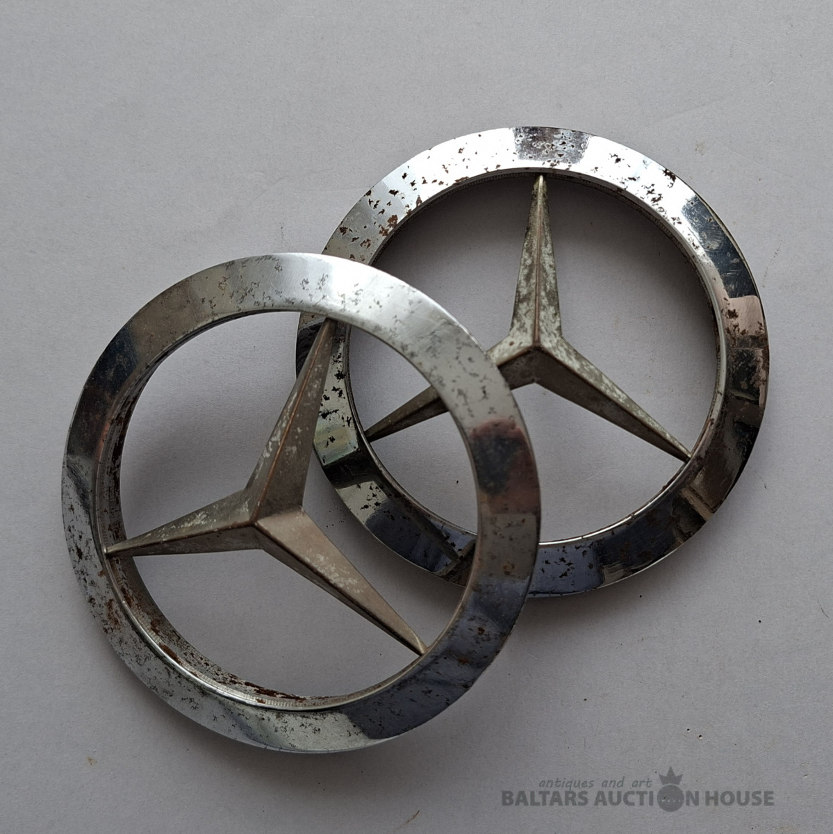 Antīkas Mercedes-Benz automašīnu emblēmas (riteņiem?), kas tiek uzskatītas par kolekcionējamiem priekšmetiem. Diametrs: 11 cm. Centrs: pārvietojams.