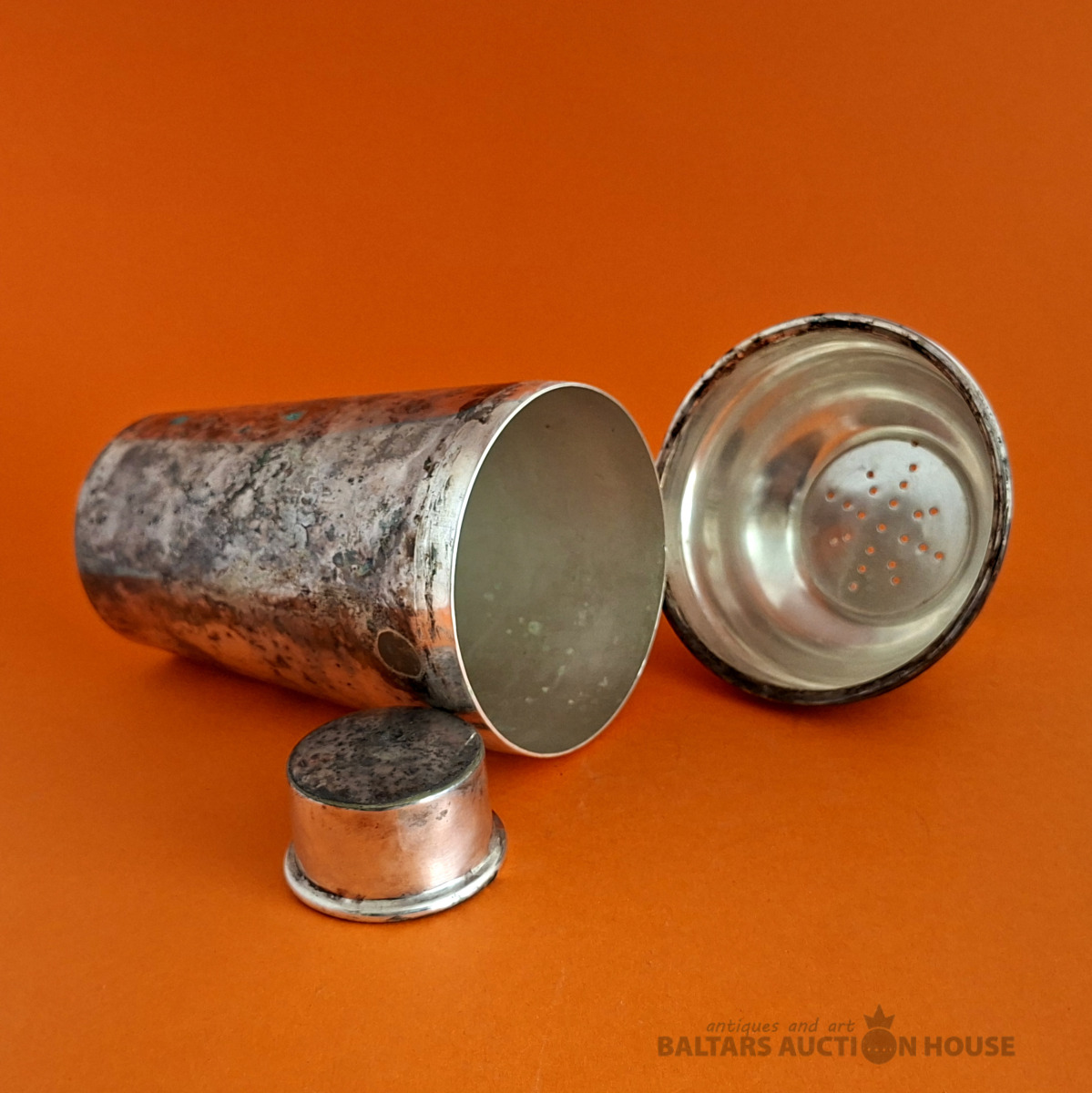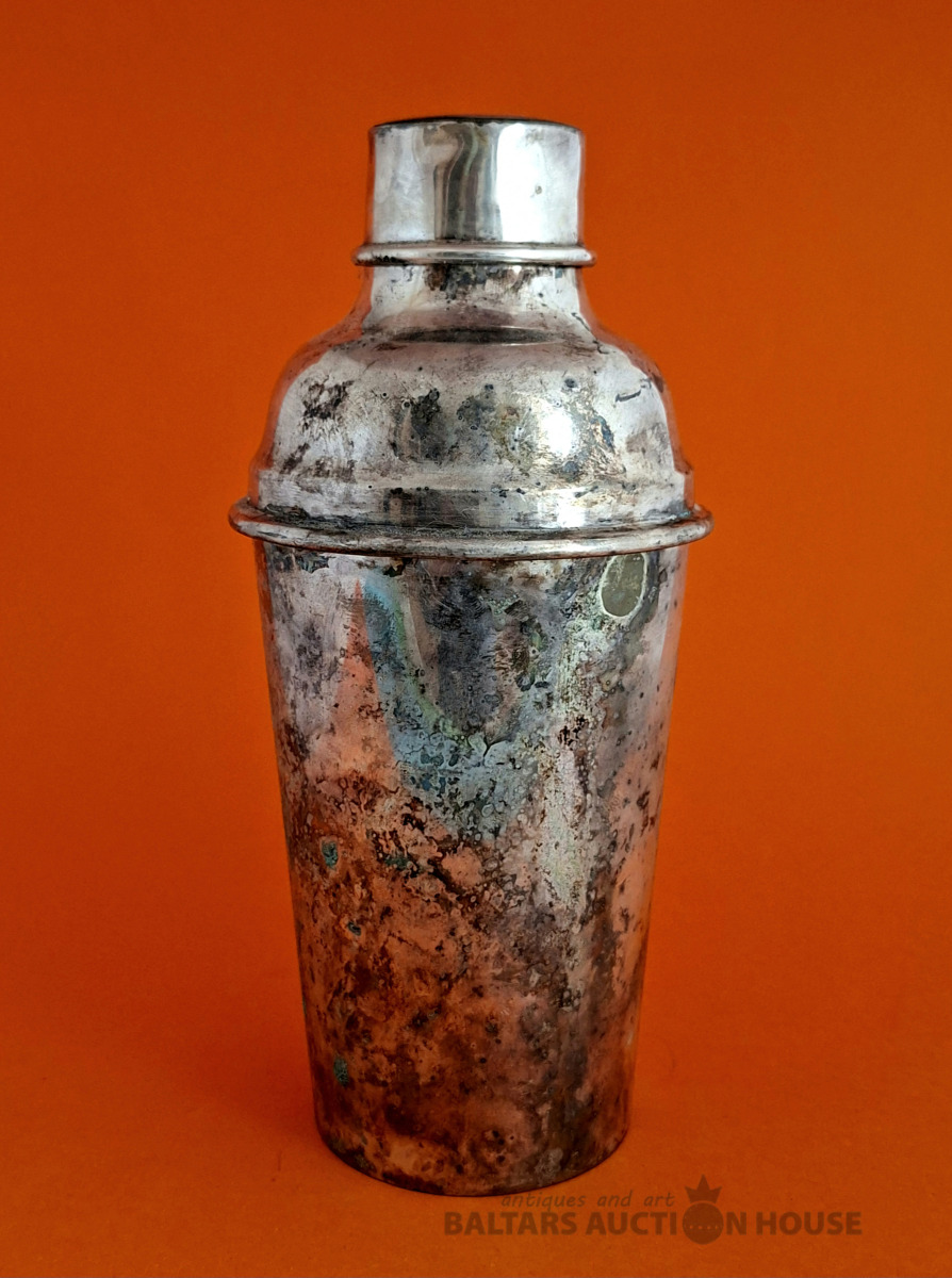 Antīks sudrabots tērauda kokteiļu kratītājs EPNS, ap 1950. gadu, Eiropa. Labā stāvoklī, bez bojājumiem. Patina.