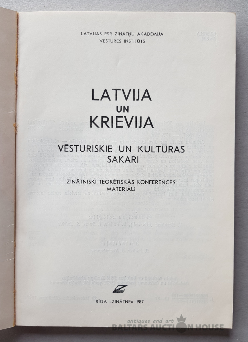 Latvija un Krievija. Vēsturiskie un kultūras sakari, 1987.