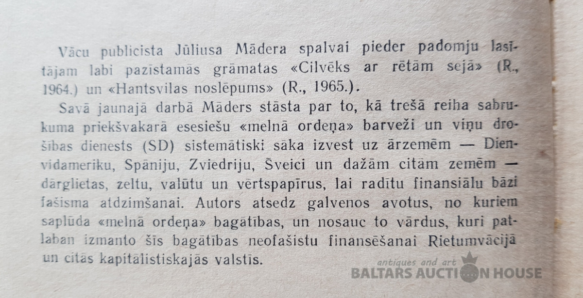 J. Māders "Melnā ordeņa bagātības", 1968. AR KARTI.