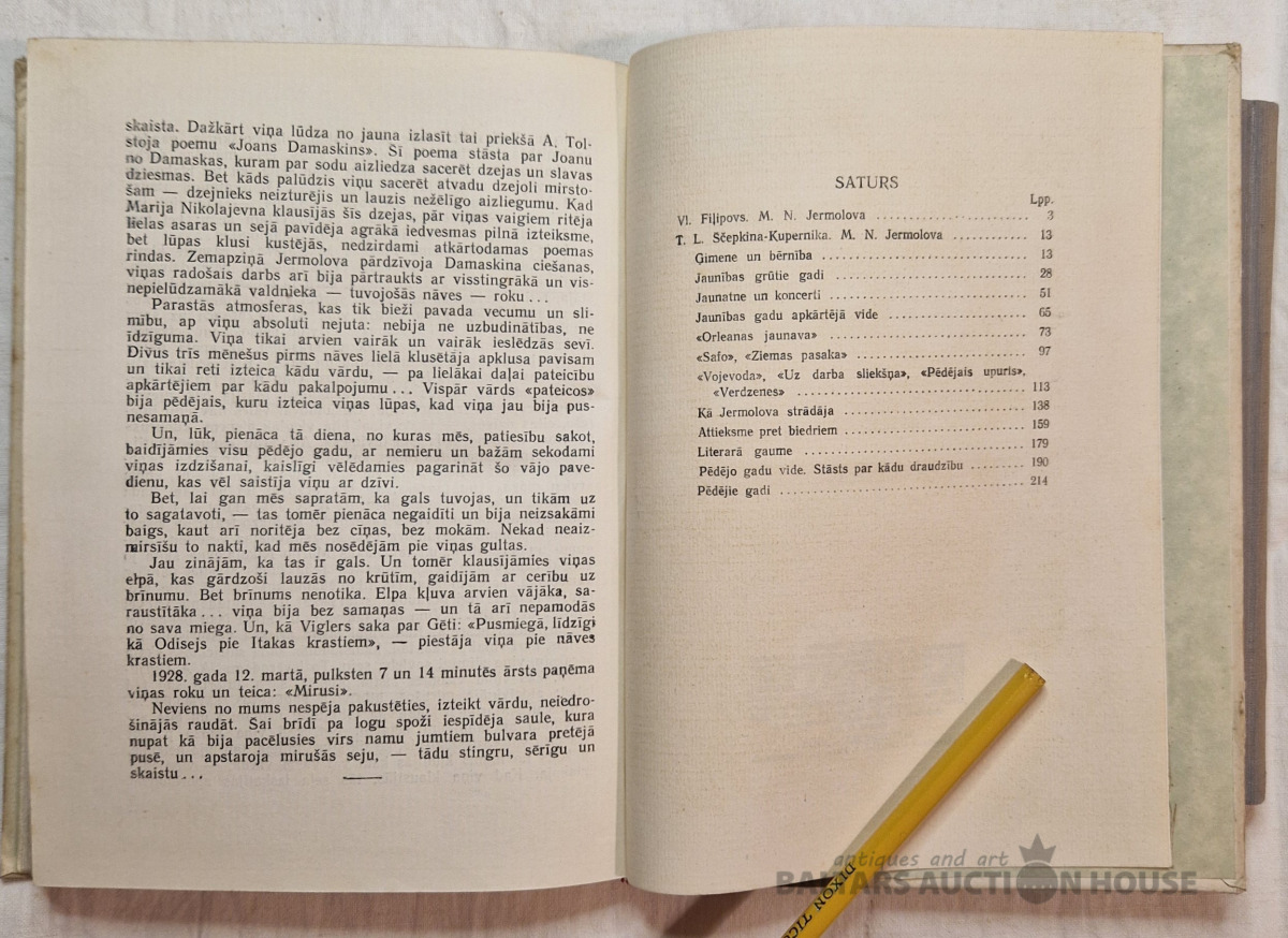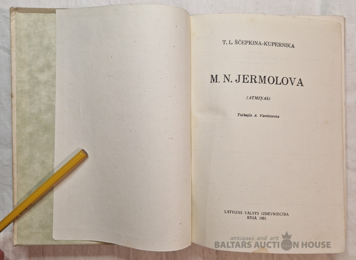 2 grāmatas. 1) M.N. Jermolova (Atmiņas). T.Ščepkina- Kupernika. Rīga, 1951. gads; 2) Sarunas. Maskavas Lielā teātra studijā 1918.-1922. K. Staņislavskis. Rīga, 1952. gads