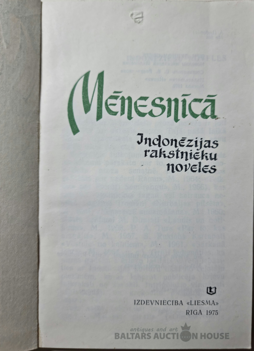 "Mēnesnīcā" - Indonēzijas rakstnieku noveles. Rīgā 1975.g.