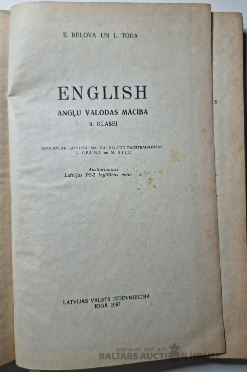 E. Belova un L. Toda "English" - 9.klasei. Rīgā, Latvijas valsts izdevniecība 1957.g.