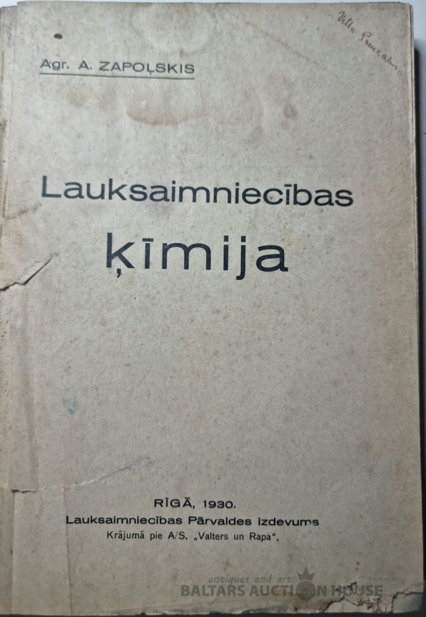 Agr. A. Zapoļskis "Lauksaimniecības Ķīmija" Rīgā 1930.g.