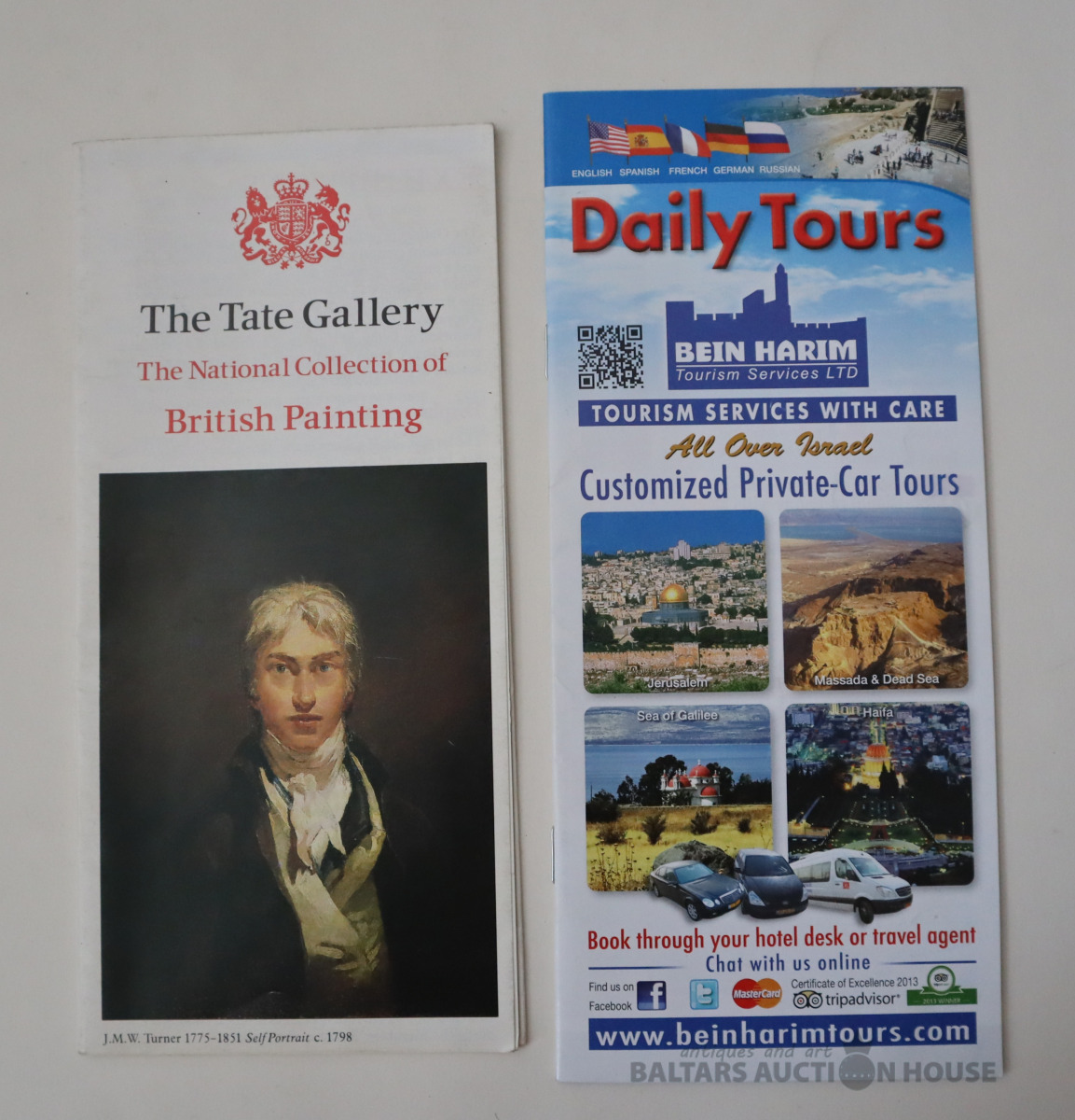 Teitas galerijas britu mākslas kolekcijas buklets un Izraēlas ekskursiju ceļvedis