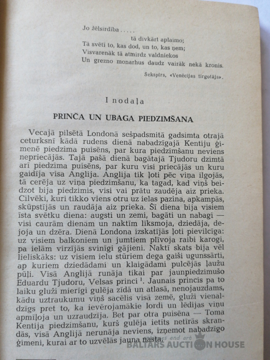 Marks Tvens “Princis un ubaga zēns”, Liesma, 1970., 204 lpp.