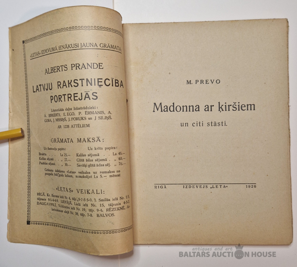 Madonna ar ķiršiem. M. Prevo. Letas mazā bibliotēka Nr. 138/139. Leta, 1926.
