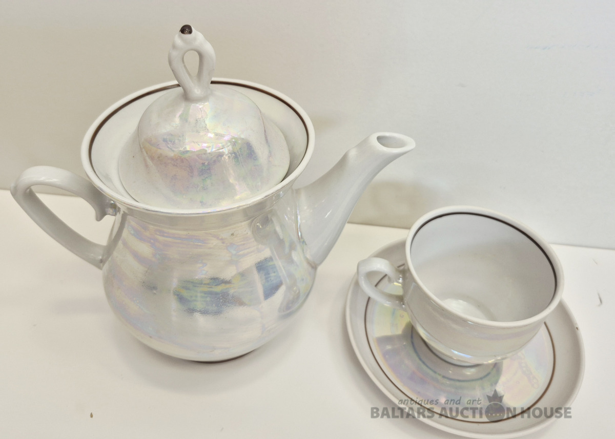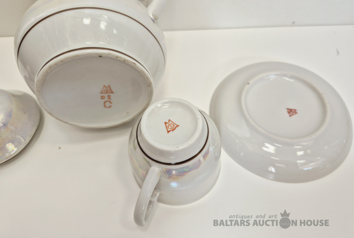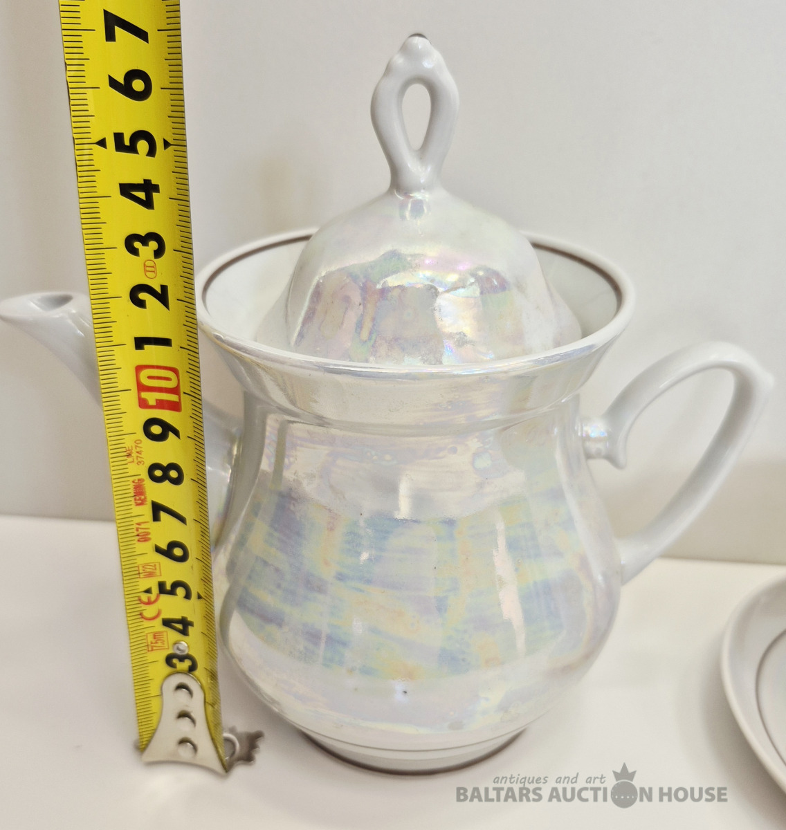 Baltkrievijas porcelāns. Dobrušas porcelāna rūpnīca (DFZ). Tējas servīzes daļas ar perlamutra (lustra) pārklājumu.
