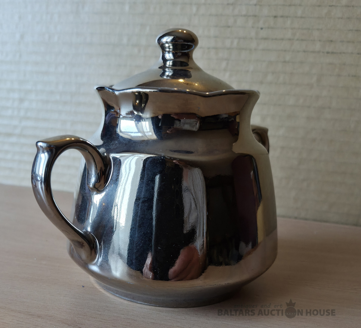 Rīgas porcelāna cukurtrauks . H ar vāciņu - 12,5 cm . Mazlietots