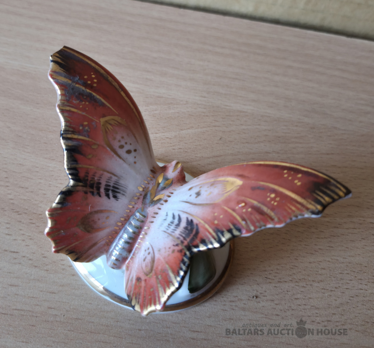 Rīgas porcelāna taurenis . Skaistas , košas krāsas bet ir defekts - nolauzts gals vienam spārnam