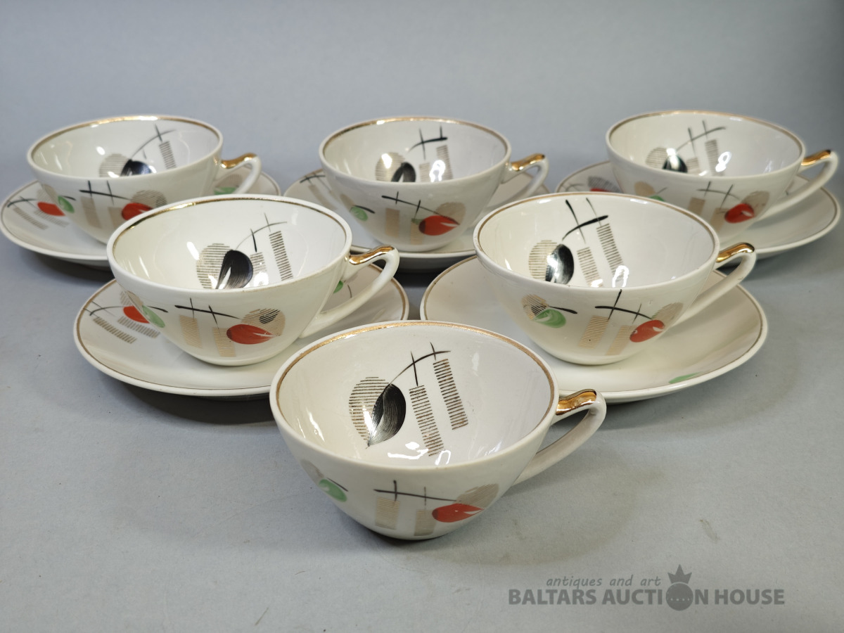 Tases ar apakštasiem SAKTA, porcelāns, RPF Rīga, bez plaisām un nošķēlumiem