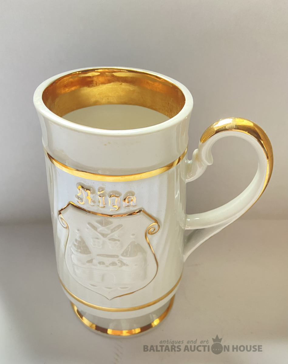 Alus kauss ar Rīgas simboliku RPR , H=14,5 cm, zelta nodilums