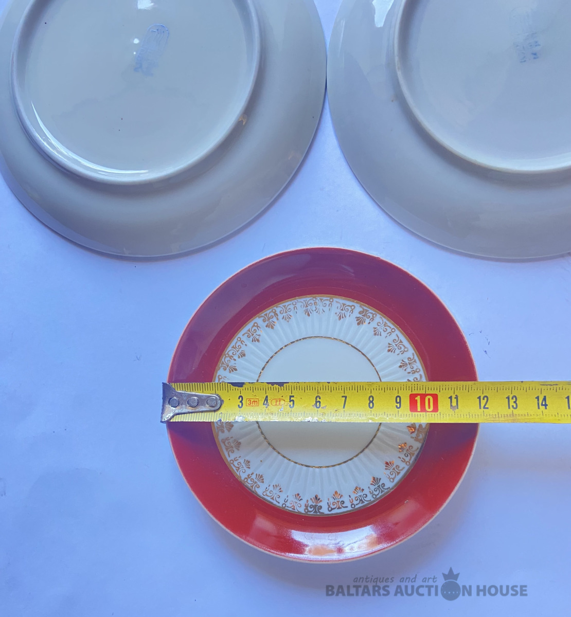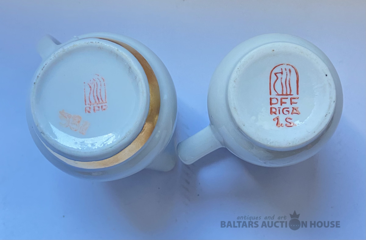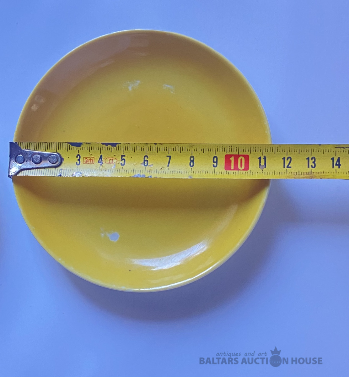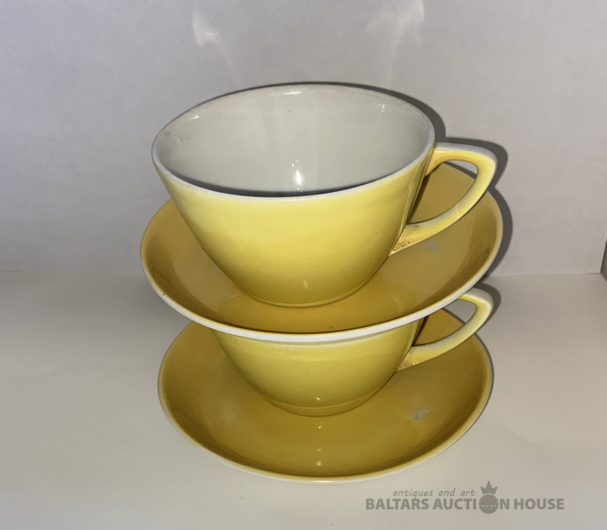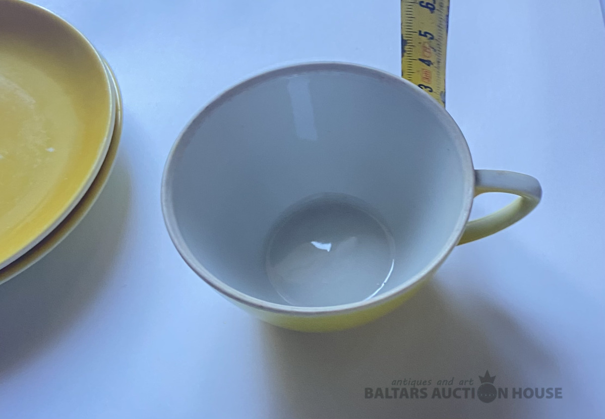 Divas duo “Ausma”, krūzēm ir gaišāka dzeltena krāsa nekā šķīvjiem,lietošanas pazīmes ,krāsas nodilums