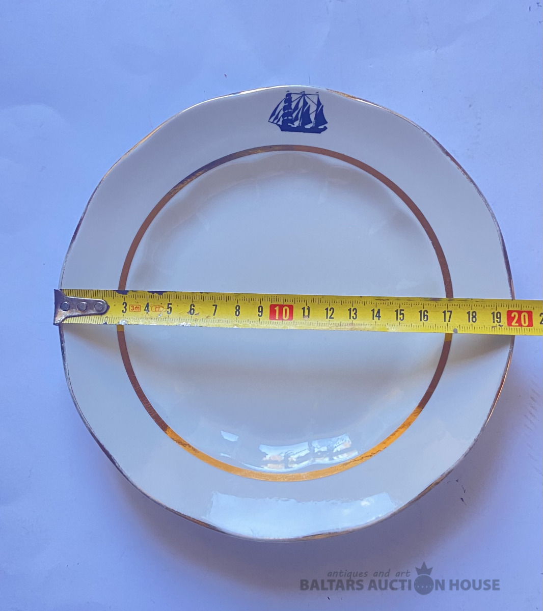 Šķīvis ar logo Kuģis RPR, D=20 cm, zelta nodilums