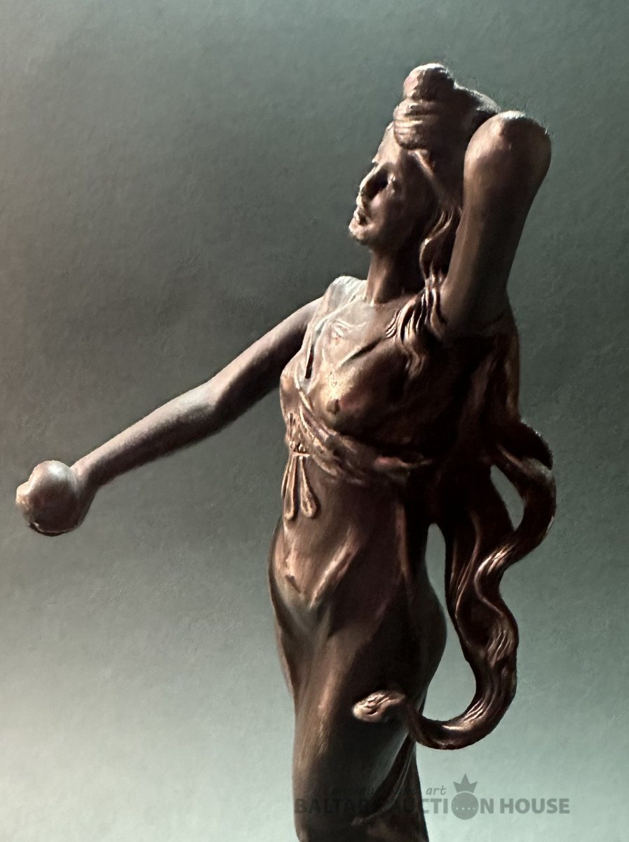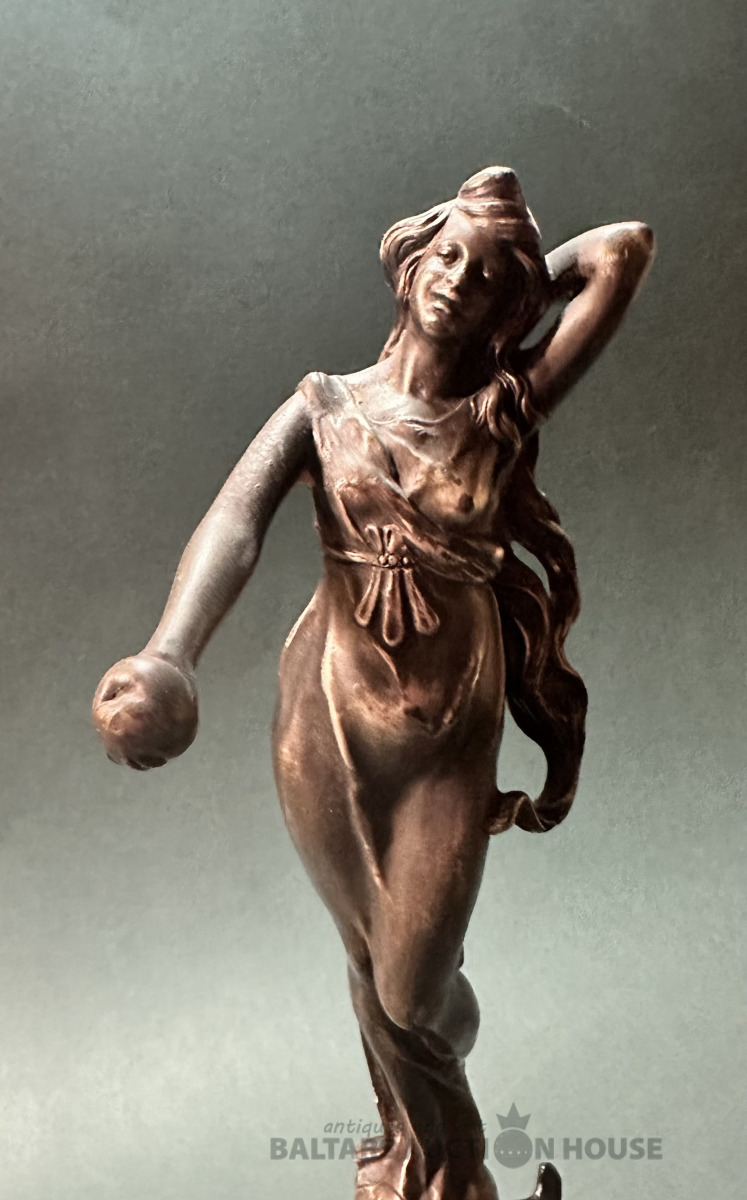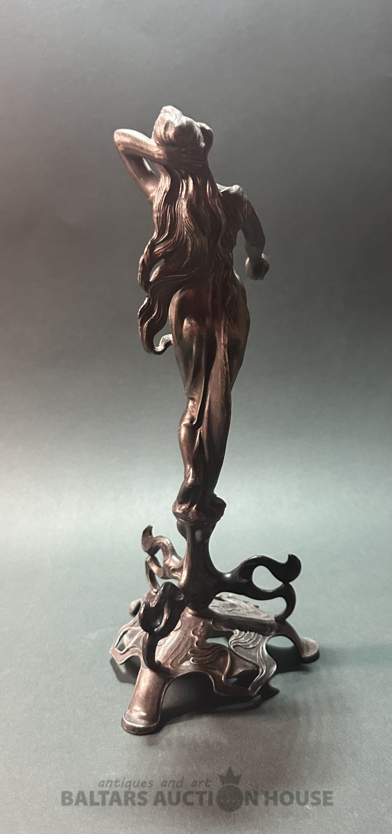 Jūgendstila statuete, 19/20. gds. mija?, augstums 23 cm, bez defektiem, metāls špialtrs.