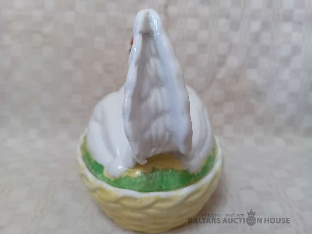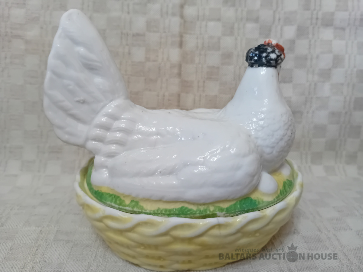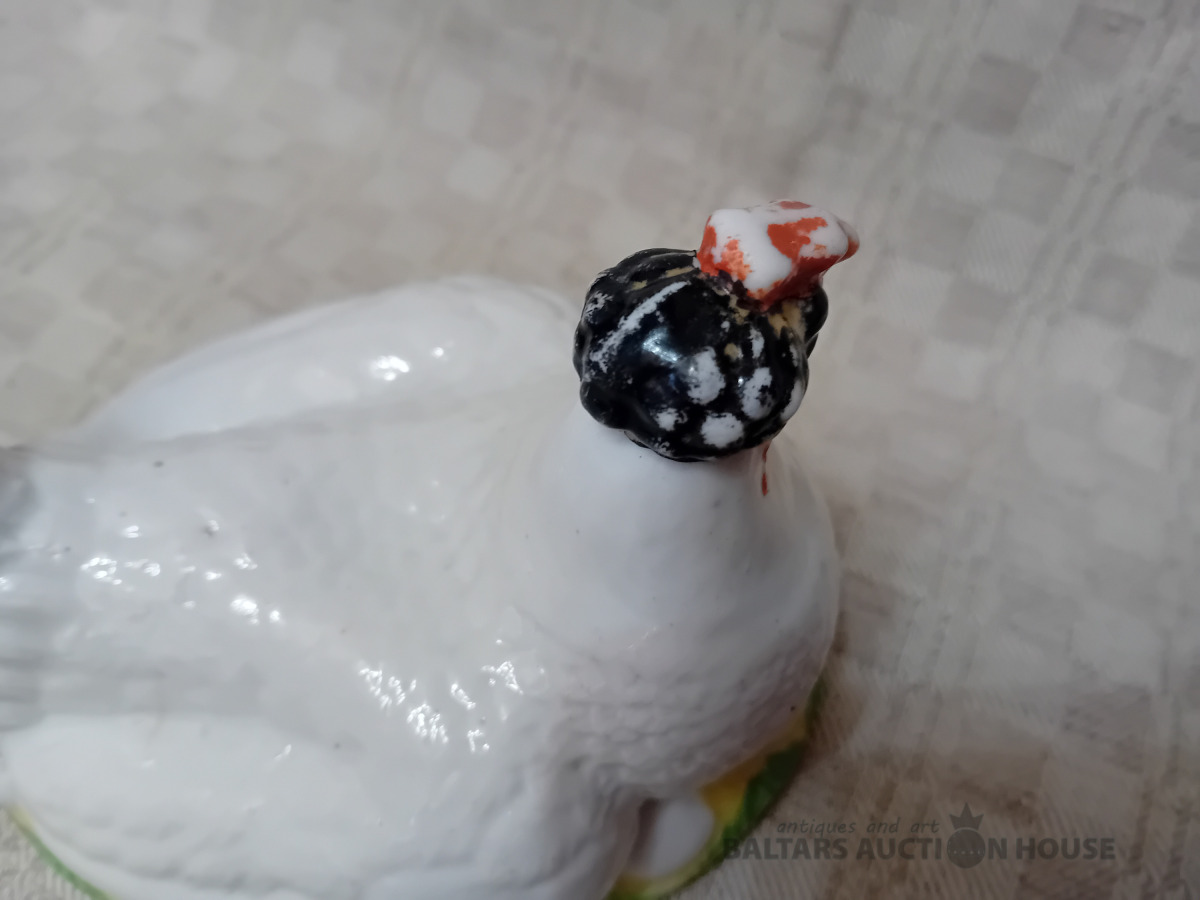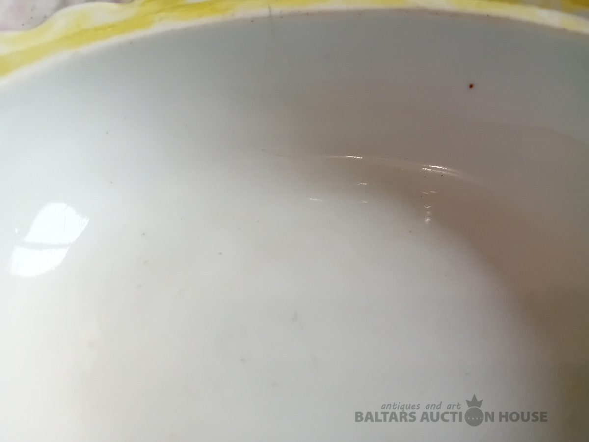 Cara laika Kuzņeovs Rīgā, sviesta trauks, pocelāns,14.5*11.5 cm, 4.5 cm h-pamatne, ir defekti, Vākam iekšpusē zirnekļa veida plaisa, kas daļēji iznāk virspusē, robs,astei glazūras atsitums, pamatnē veca plaisa, kas turpinās, kā ""svaiga""