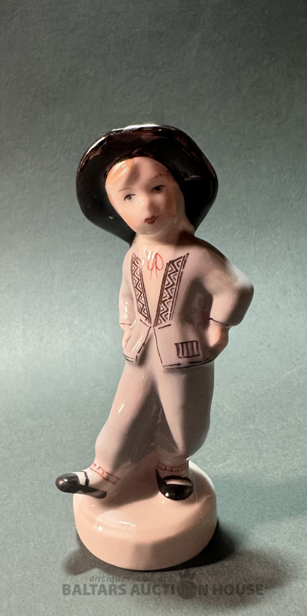 Porcelāna figūriņa DEJOTĀJS, RPR, 1950-tie gadi, augstums 11 cm, sarkanais zīmogs, 1.šķira, galva līmēta.