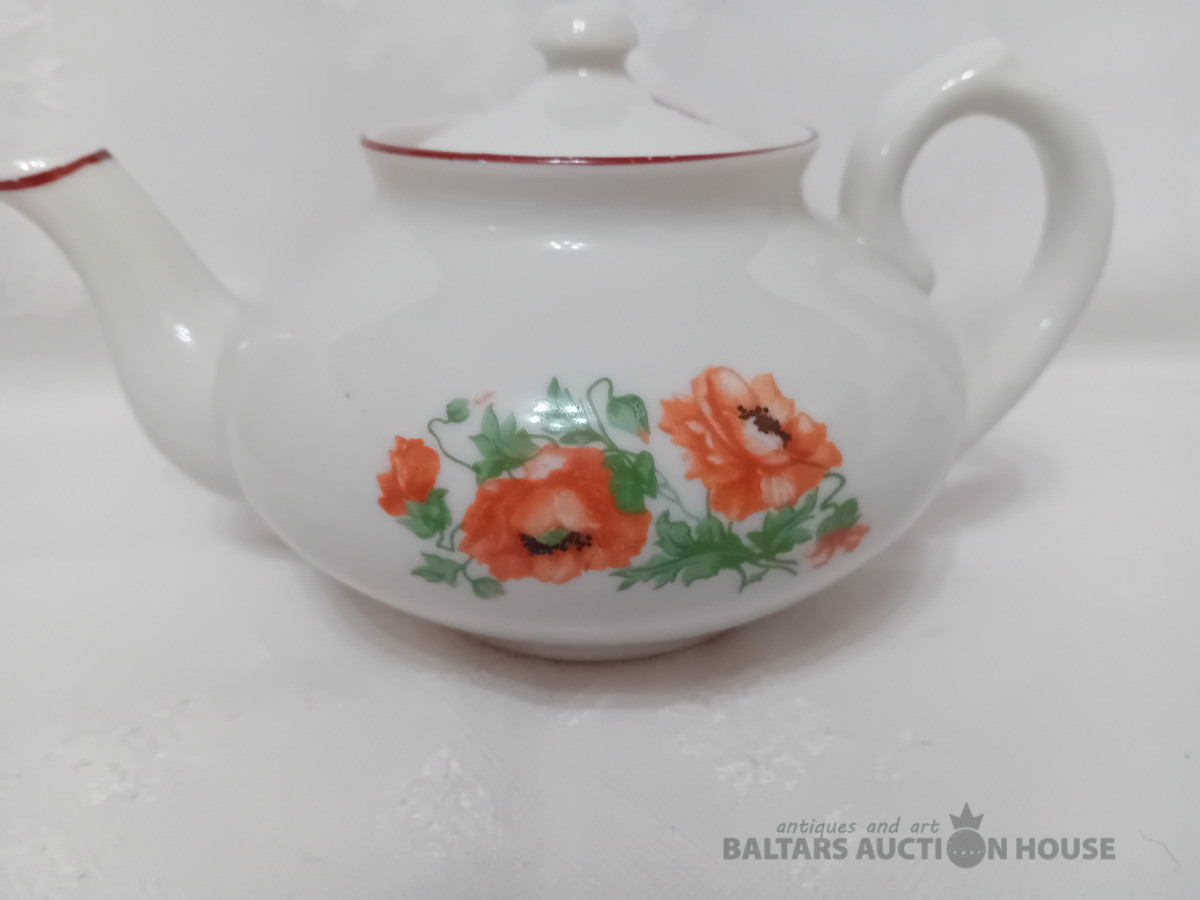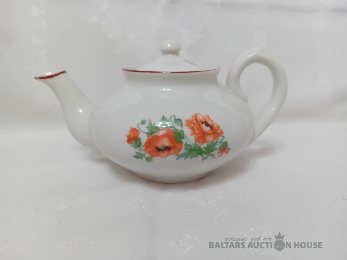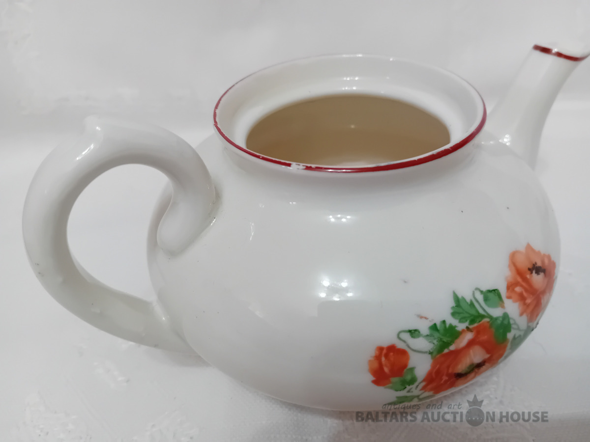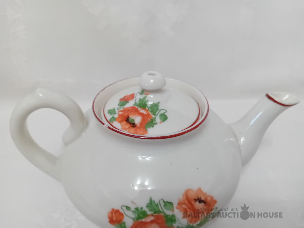 Porcelāna tējas kanna, Dmitrovas p.r. Verbilki, 1940-1946. g. zīmogs, lietots, vāciņam defekts, Vāciņam atsitums