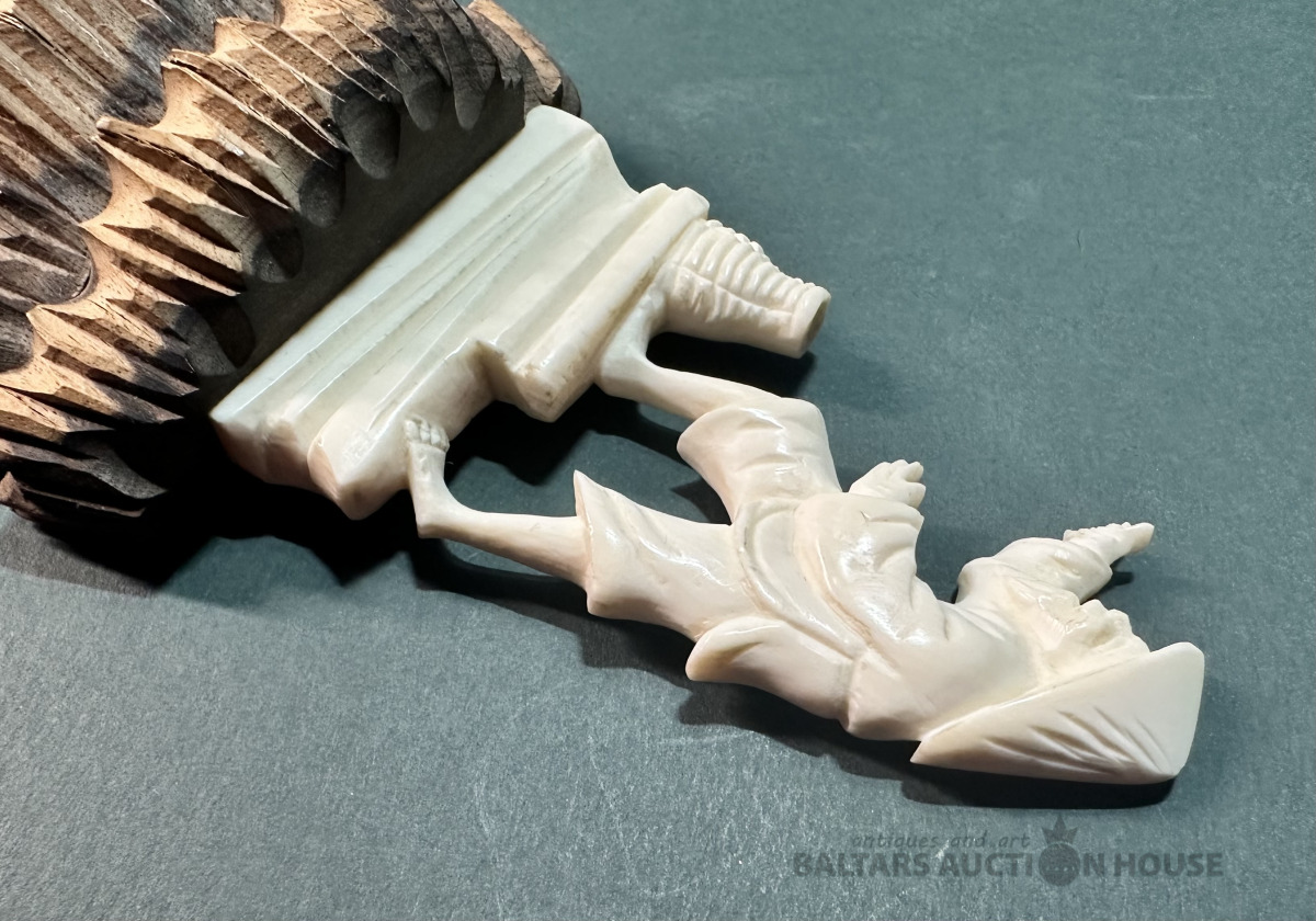 Figūriņa, kokgriezums un dabīga kaula grebums, augstums 10.5 cm.