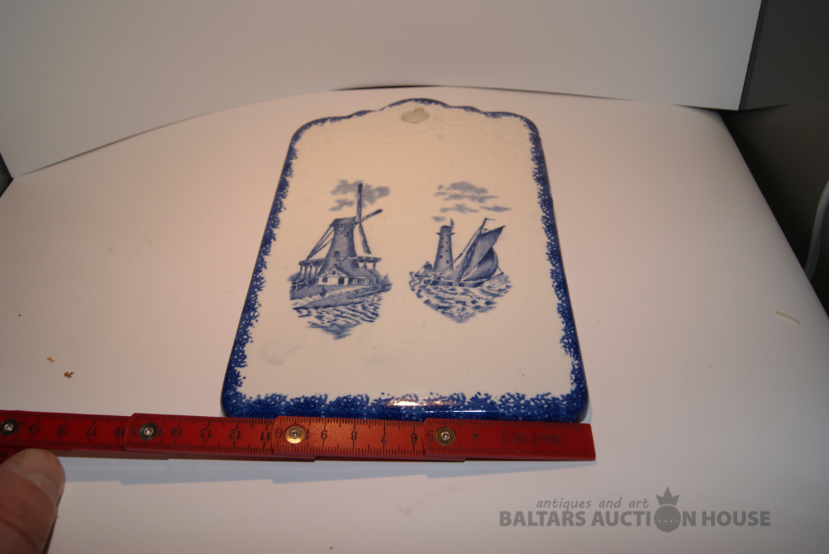 Siera dēlis, klasisks holandiešu stila dekors zilā krāsā. Porcelāns, 21x12,5 cm