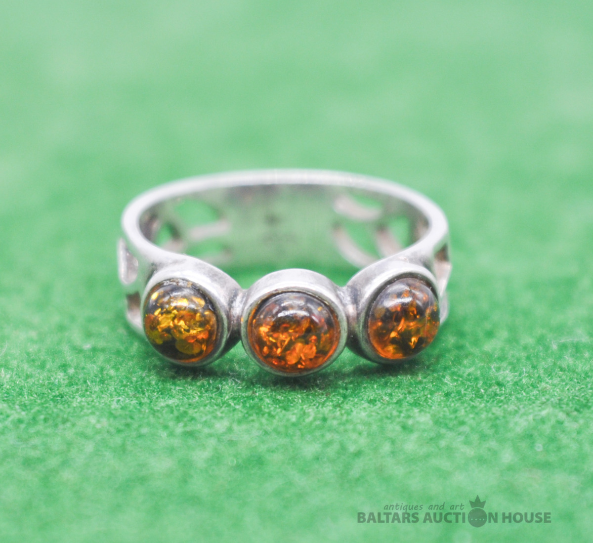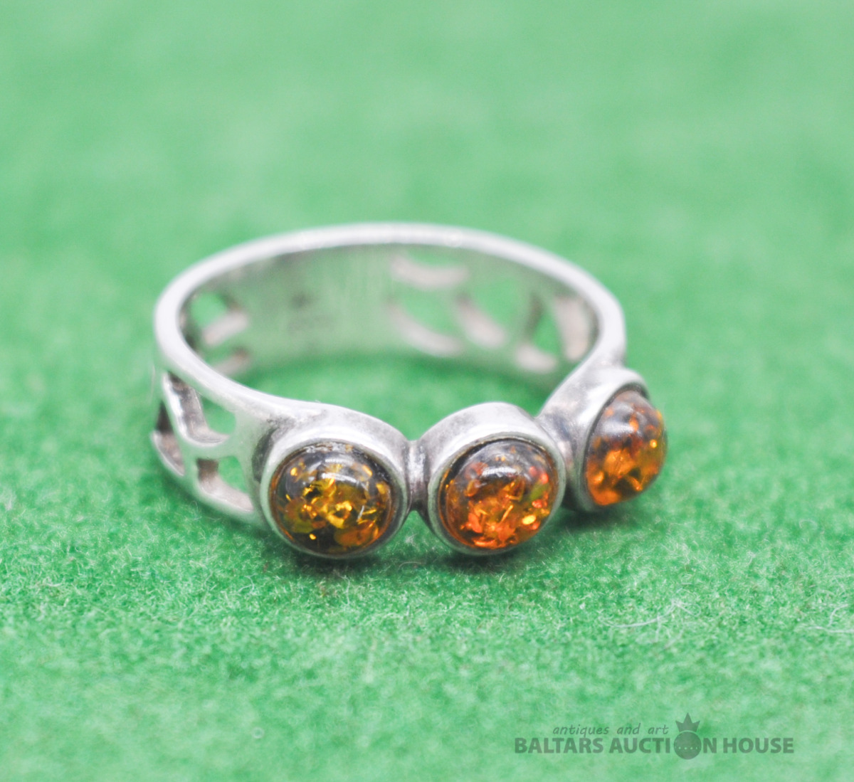 925 sudraba gredzens ar dzintaru. Svars 3.3 grami.