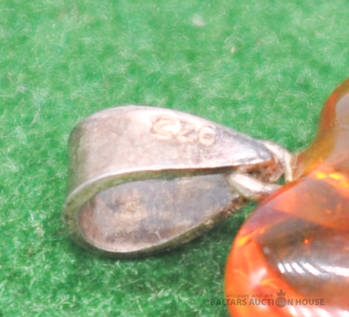 925 sudraba/dzintara piekariņš. Svars 1.0 grams.