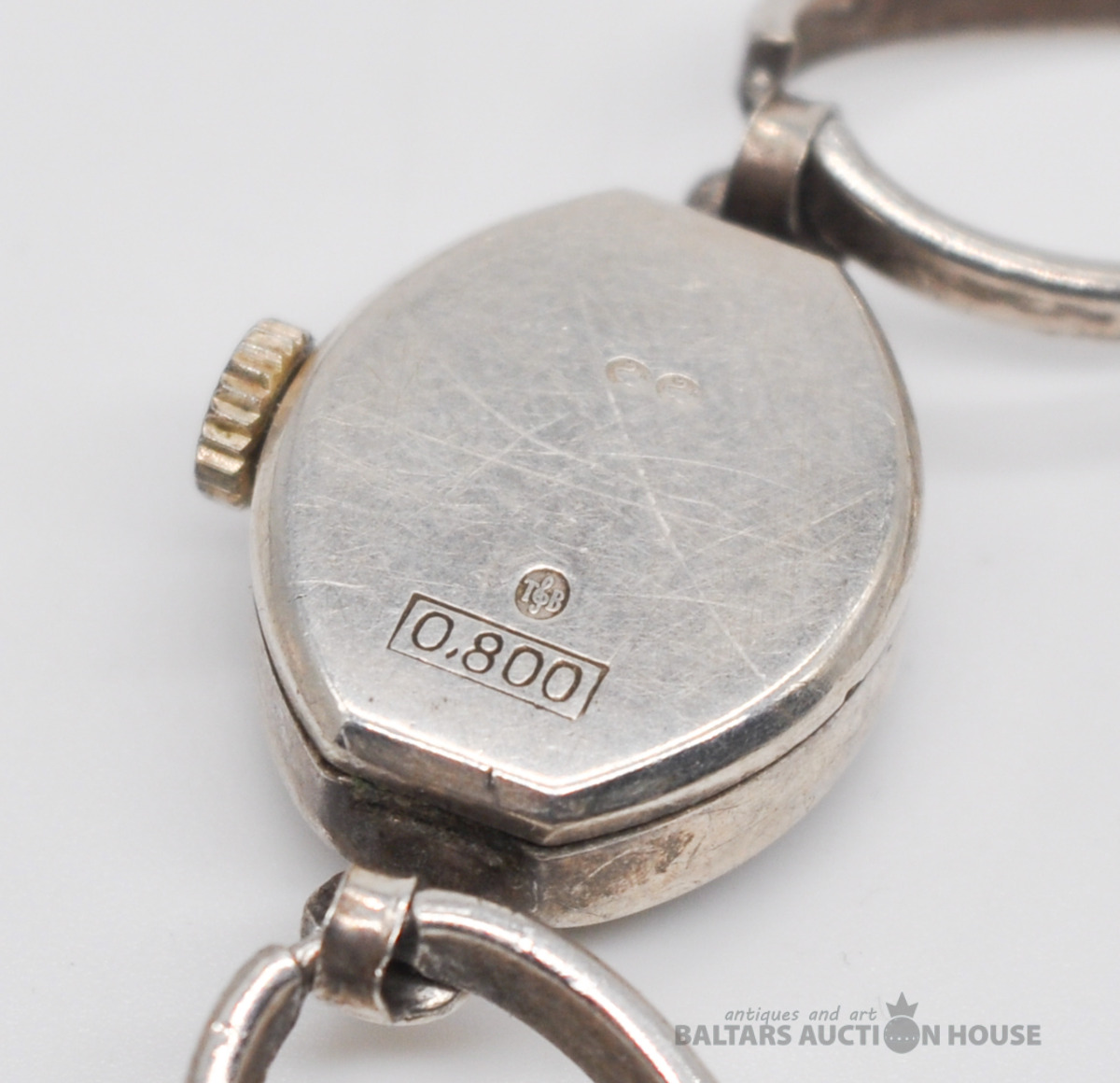 800 sudraba sieviešu rokas pulkstenis. Nestrādā. Svars bez mehānisma 16.5 grami.