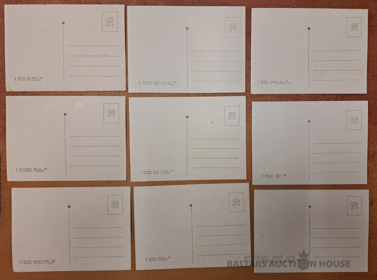9 atklātnes ar Latvijas mākslinieku darbiem