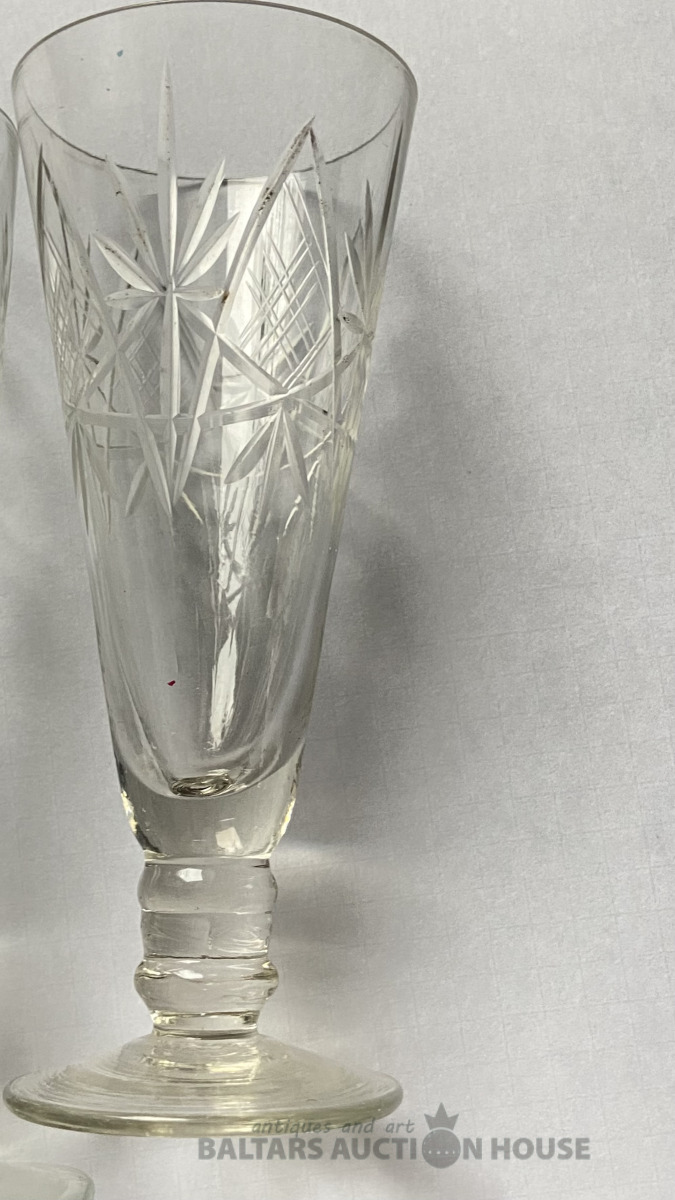 plāna stikla caurspīdīgas glāzītes , Iļģuciema stikla fabrika? Roku gravēšana , H= 11 cm (2.gb), 11,5 cm-1.gb.