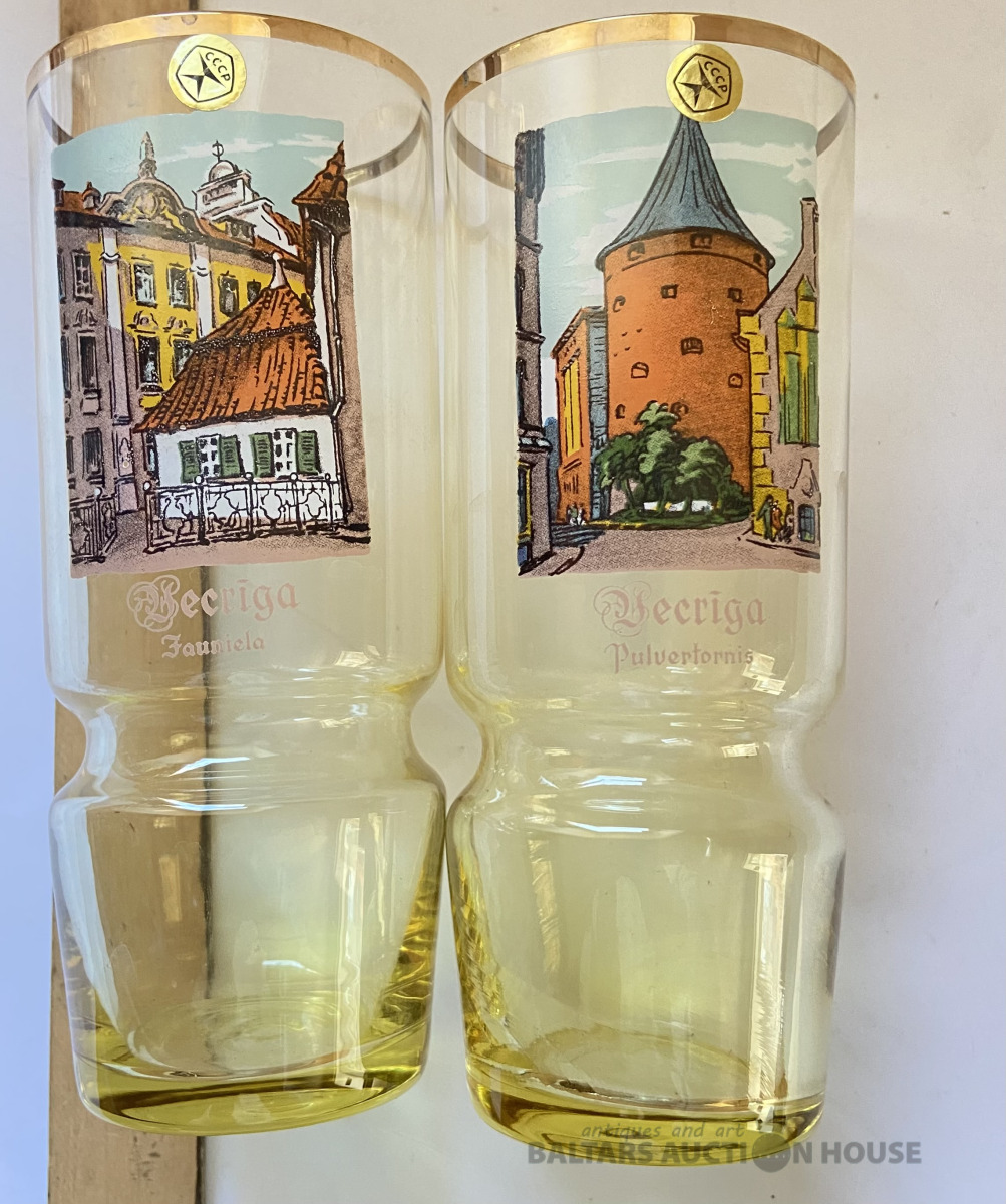 Četras glāzes “Vecrīga”,Latvijas stikls. H= 14,5 cm